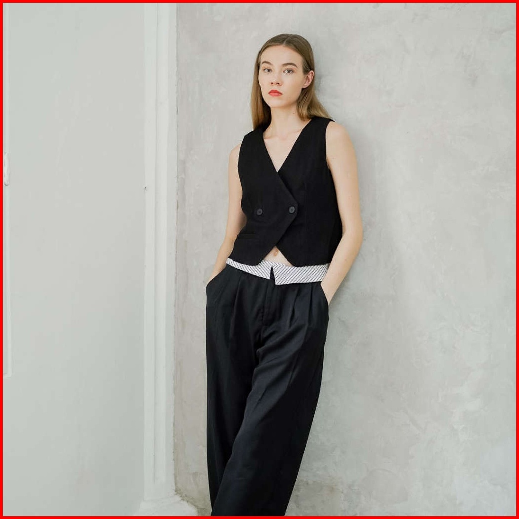 This Is April Outer Wanita Palomi Crop Black Vest 186965