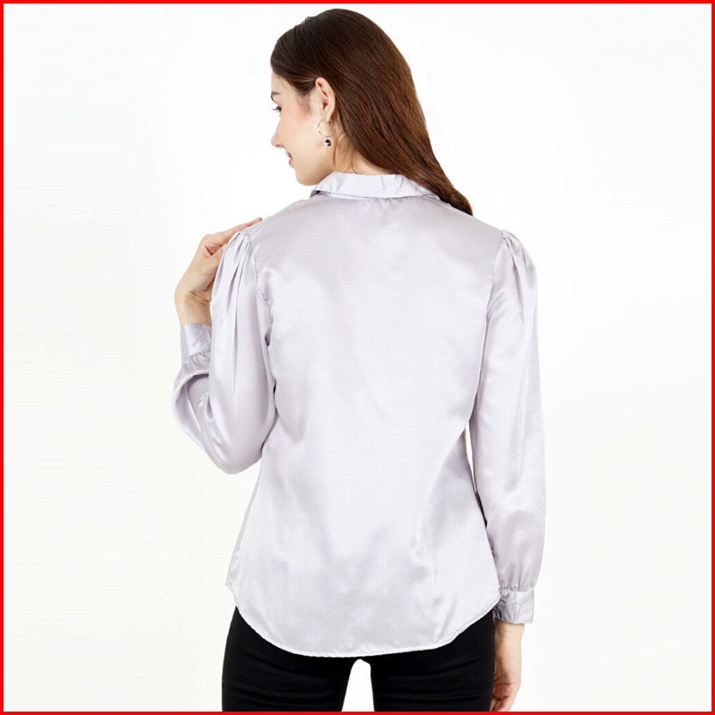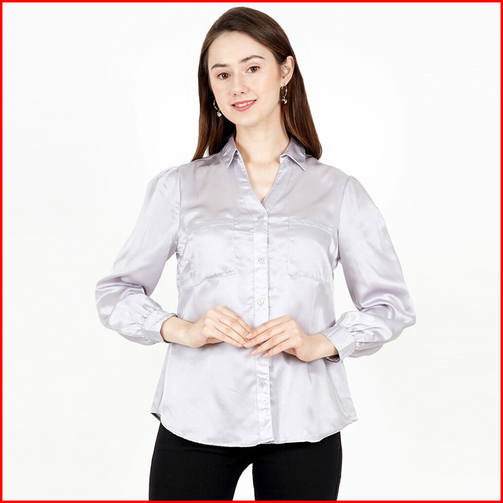 Novel Mice - Kemeja Soft Grey Silk Pocket