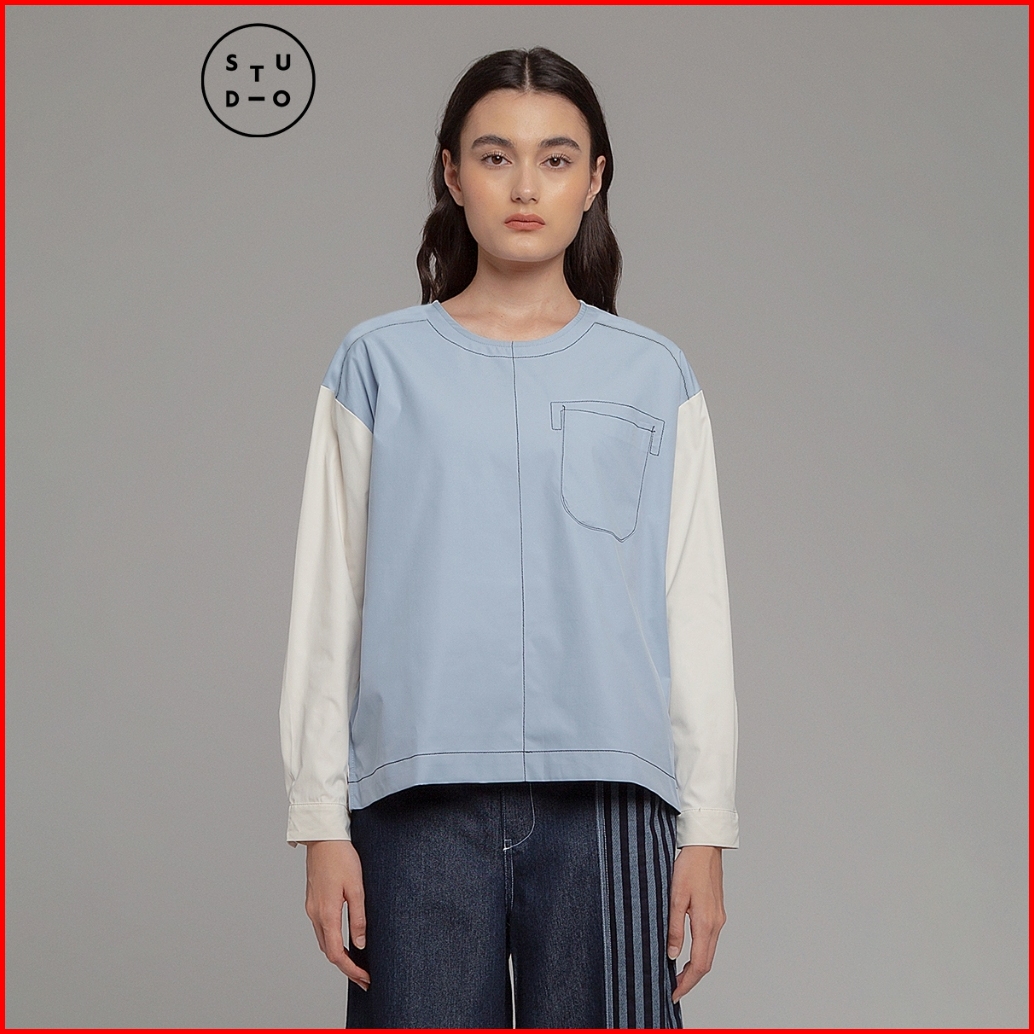 Cottonink Studio - Atasan Blouse Wanita Light Blue Dynevor Studiospringcollection