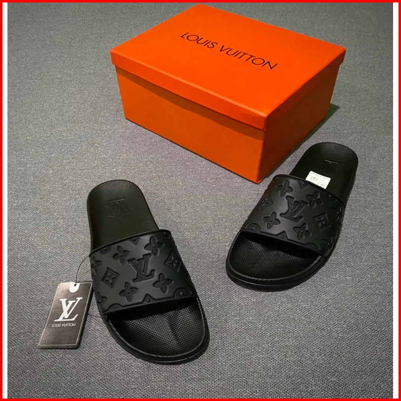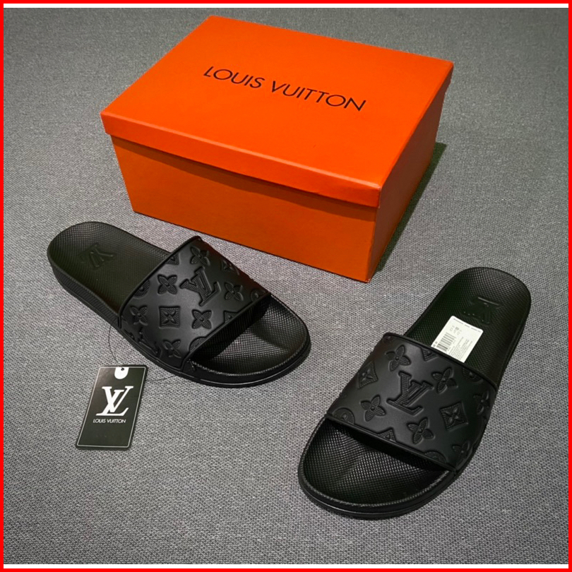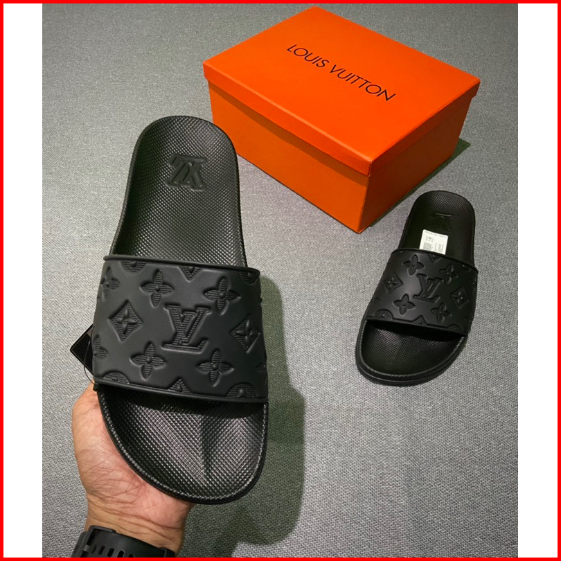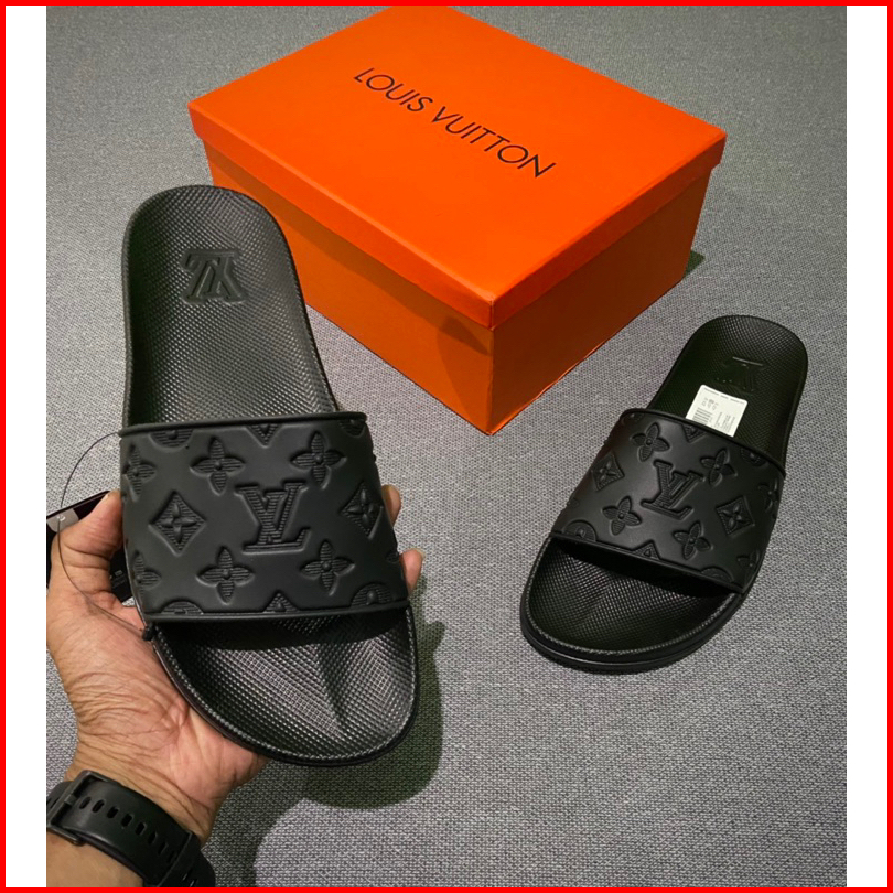 Sandal Slip-on Premium Miror Motif Kembang Embose Full Black Free Boxs