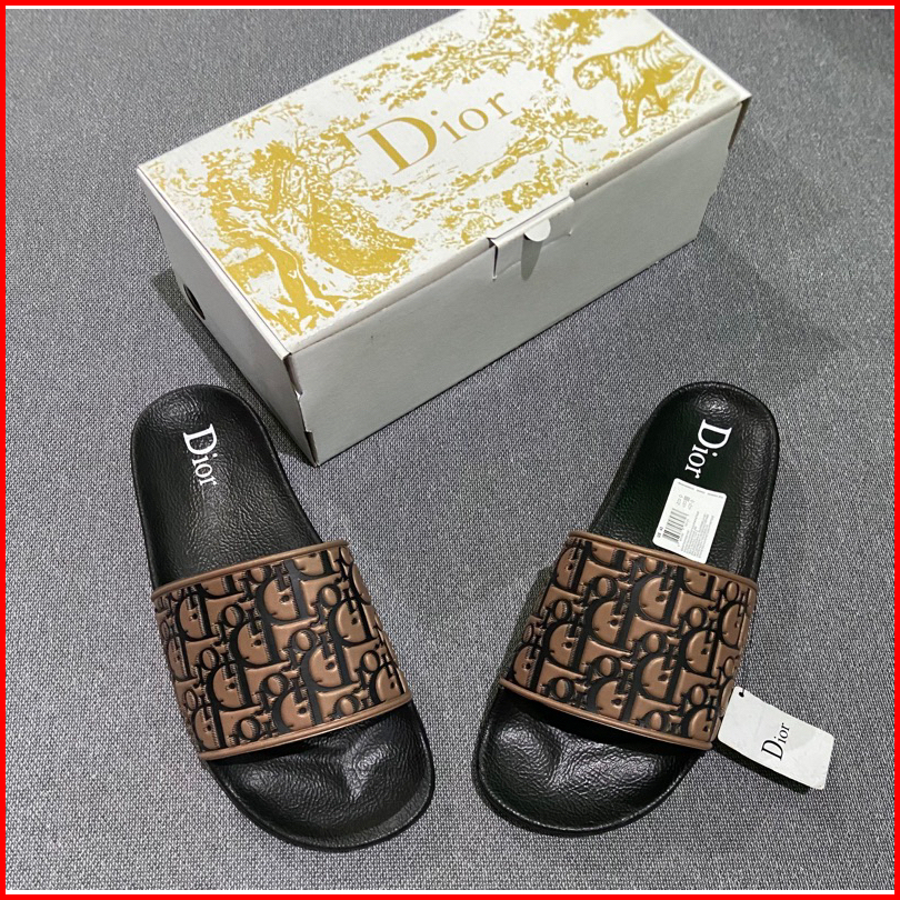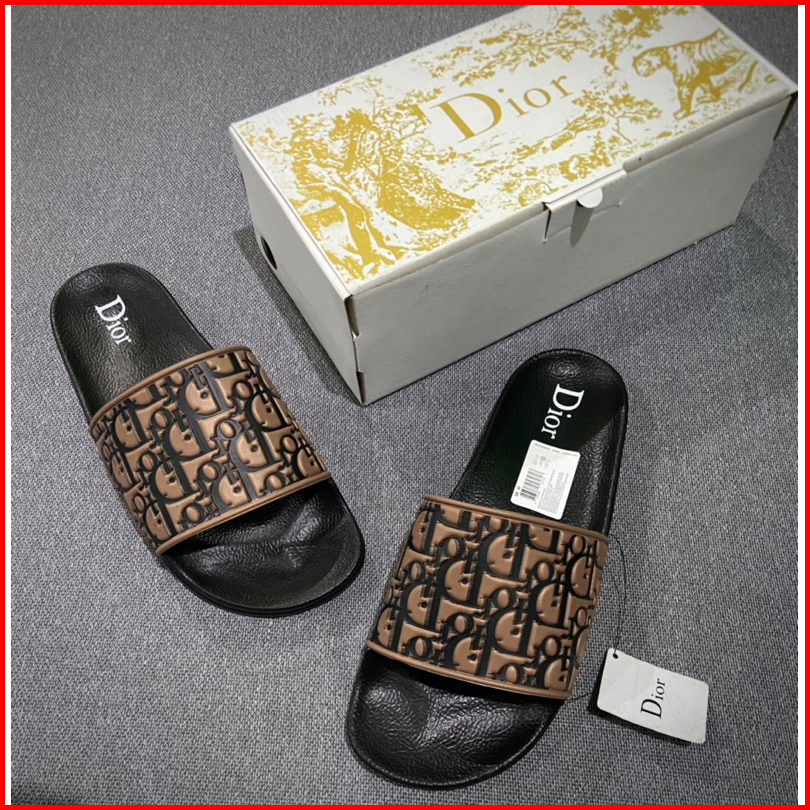Sandal Slip-on Premium D Motif Embos Coklat Hitam Free Boxs