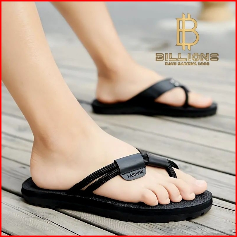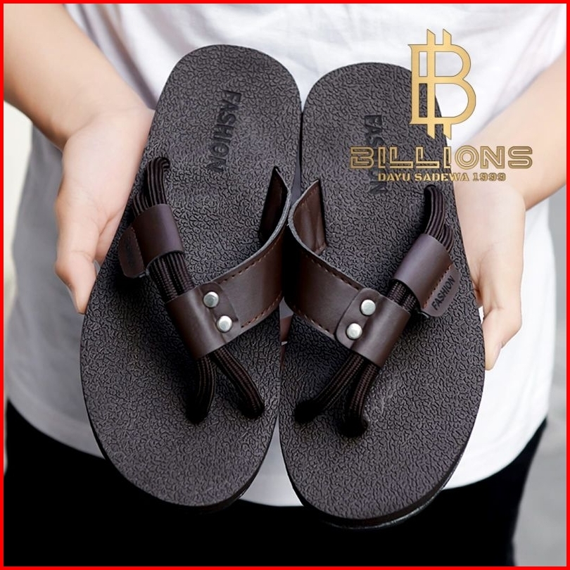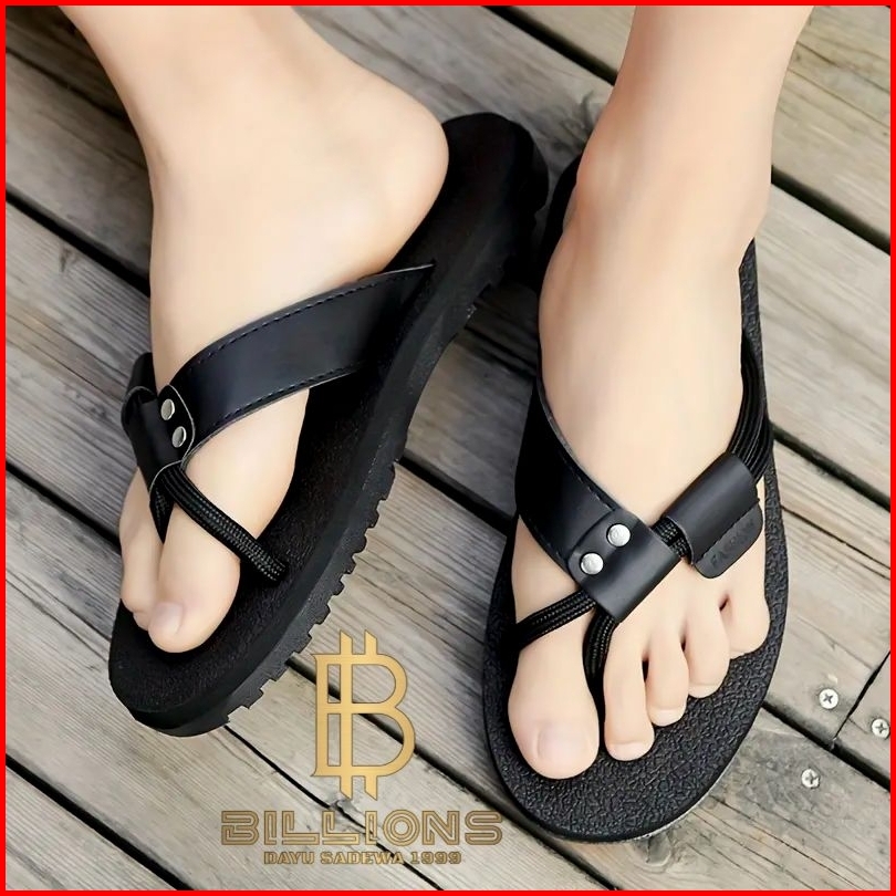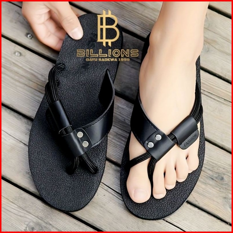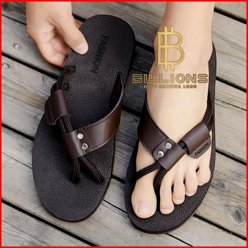Sandal Jepit Pria Model Tali Nylon Kuat Anti Selip Sendal Kulit Casual Santai Keren Elegant Hitam Coklat