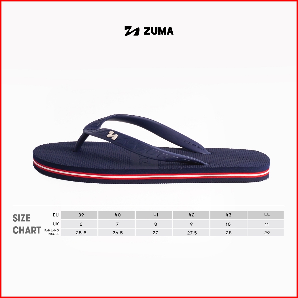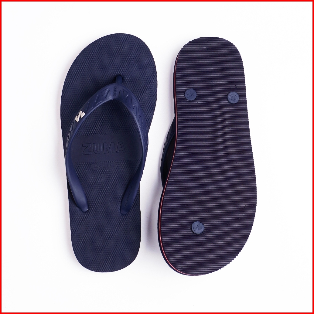 Zuma Men Stripe 8 Navy Red Sandal Jepit Pria Karet Polos Biru Tua Merah