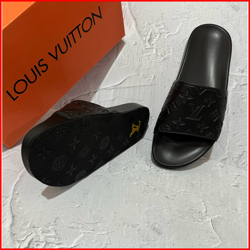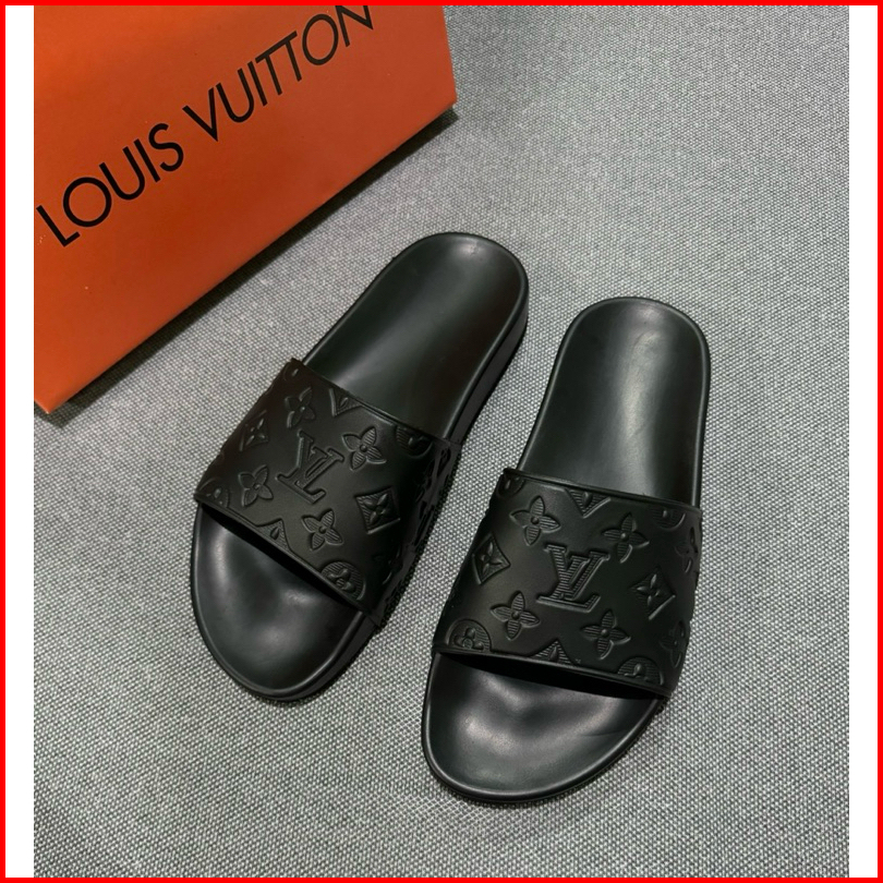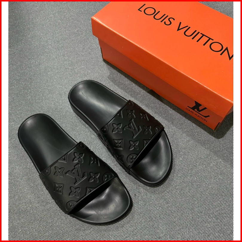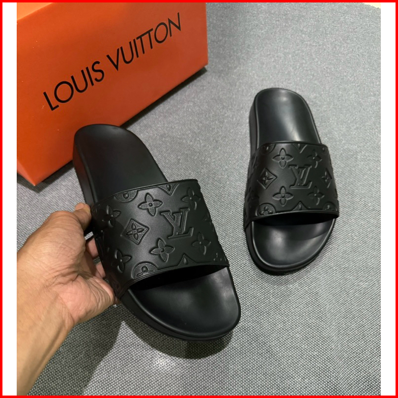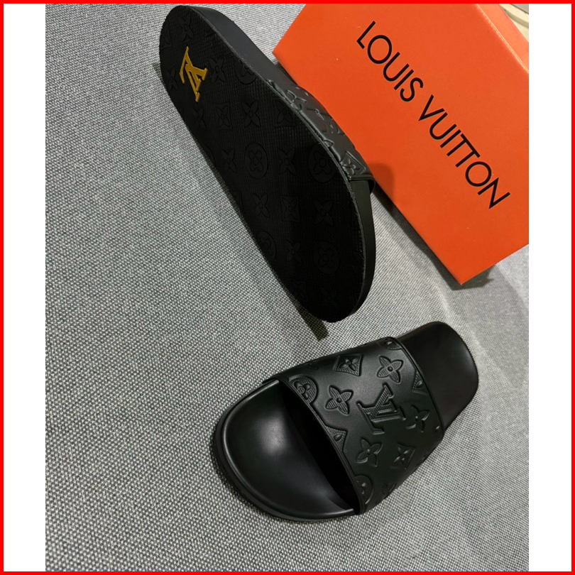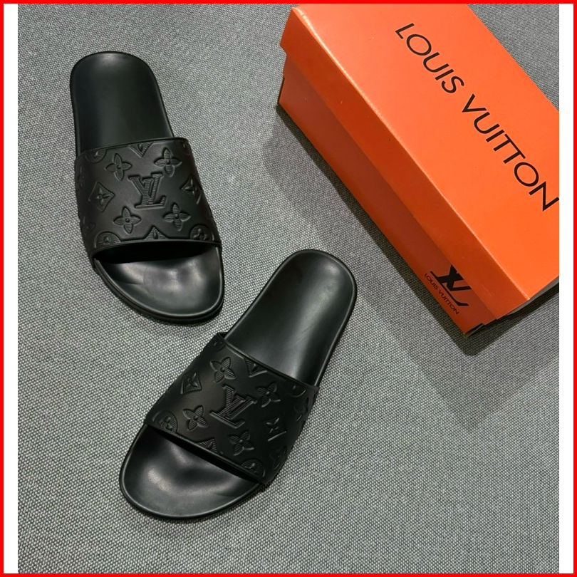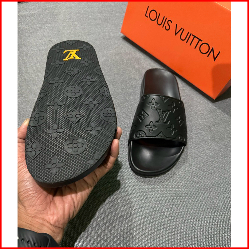 Sandal Slip On Premium Lp New Miror Hitam Polos Fre Boxs