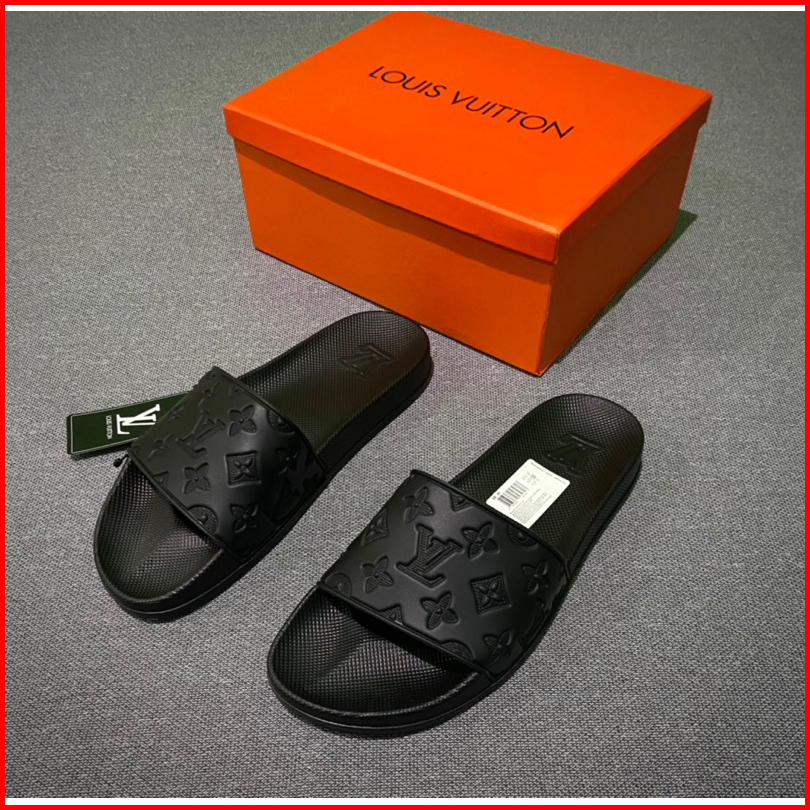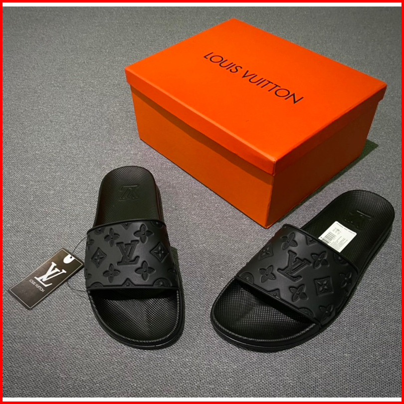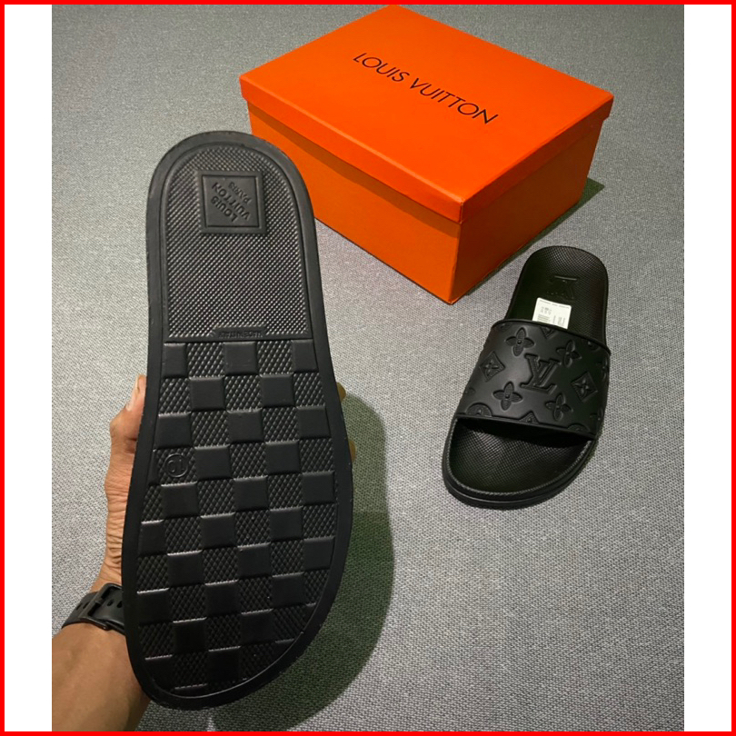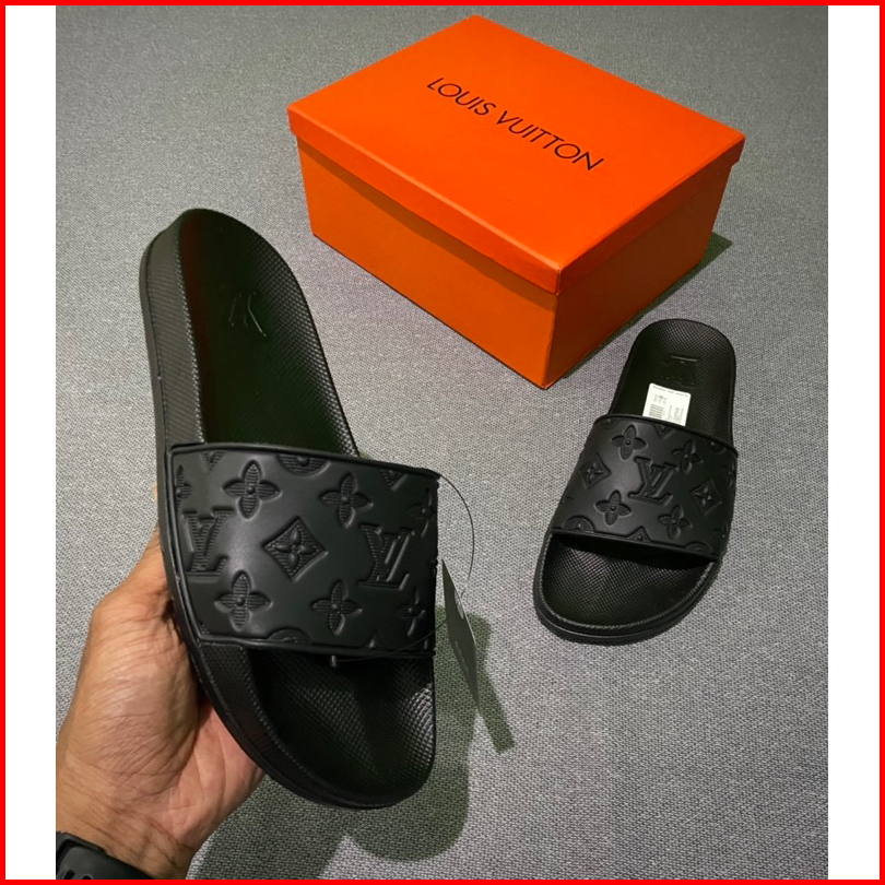 Sandal Slip-on Premium Miror Motif Embose Full Black Free Boxs