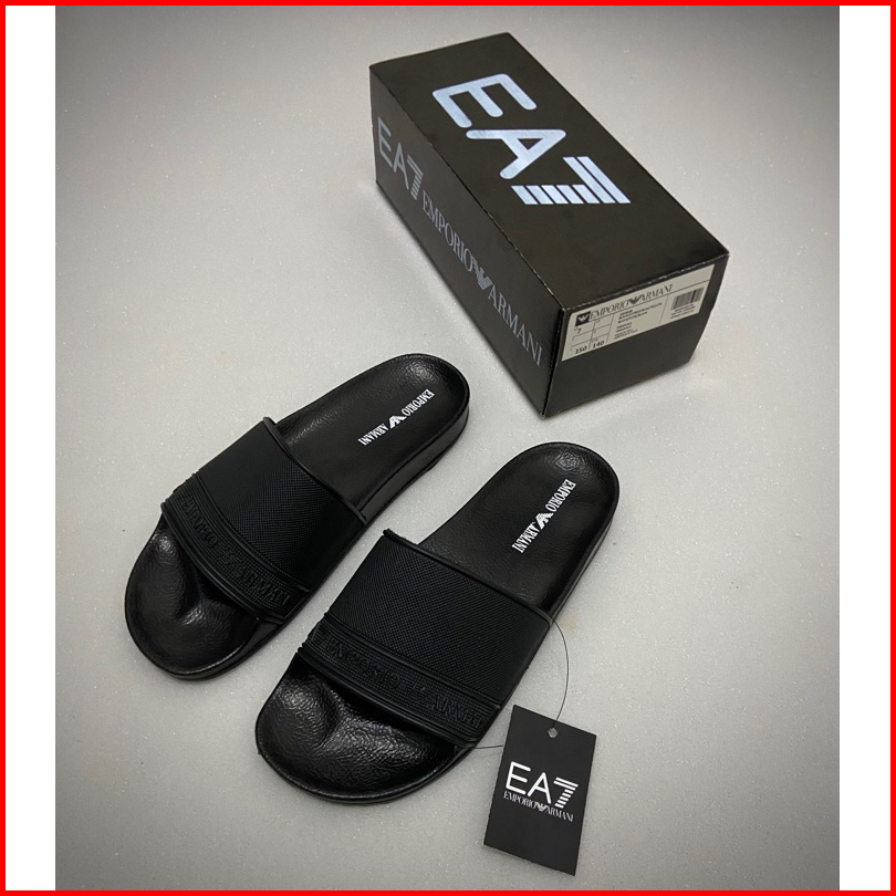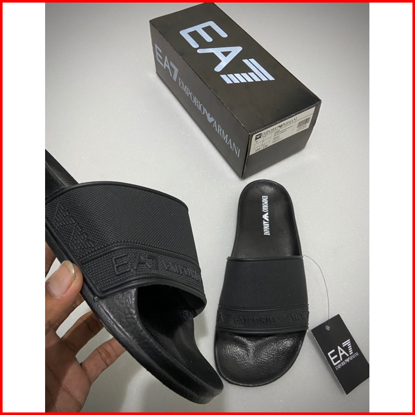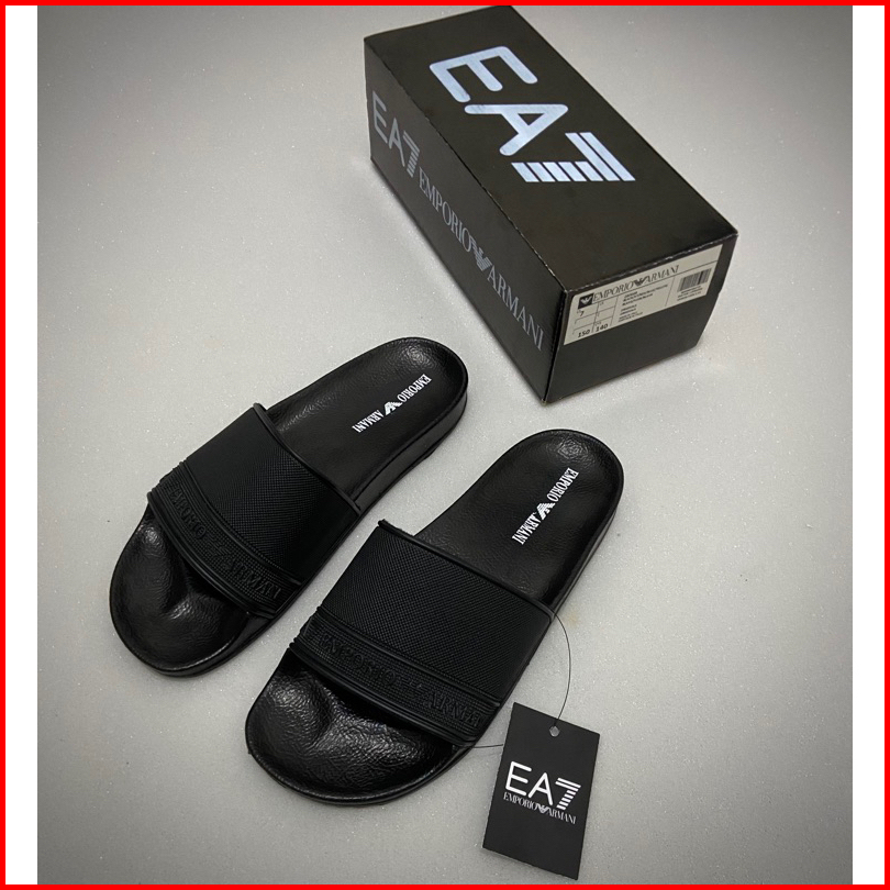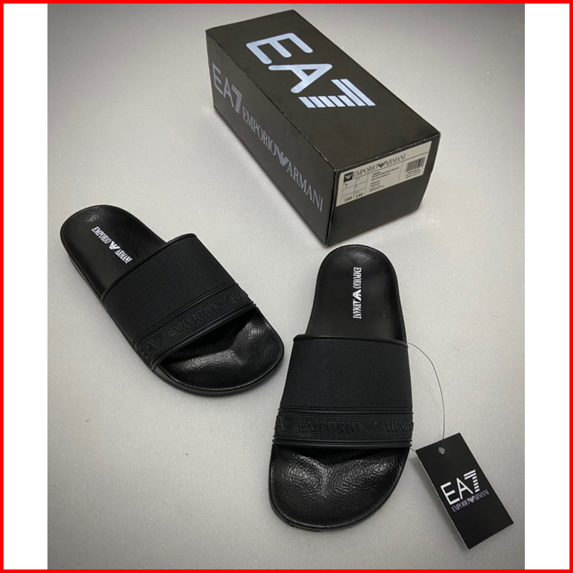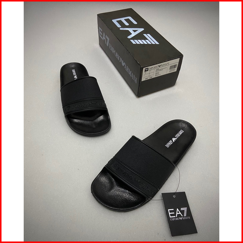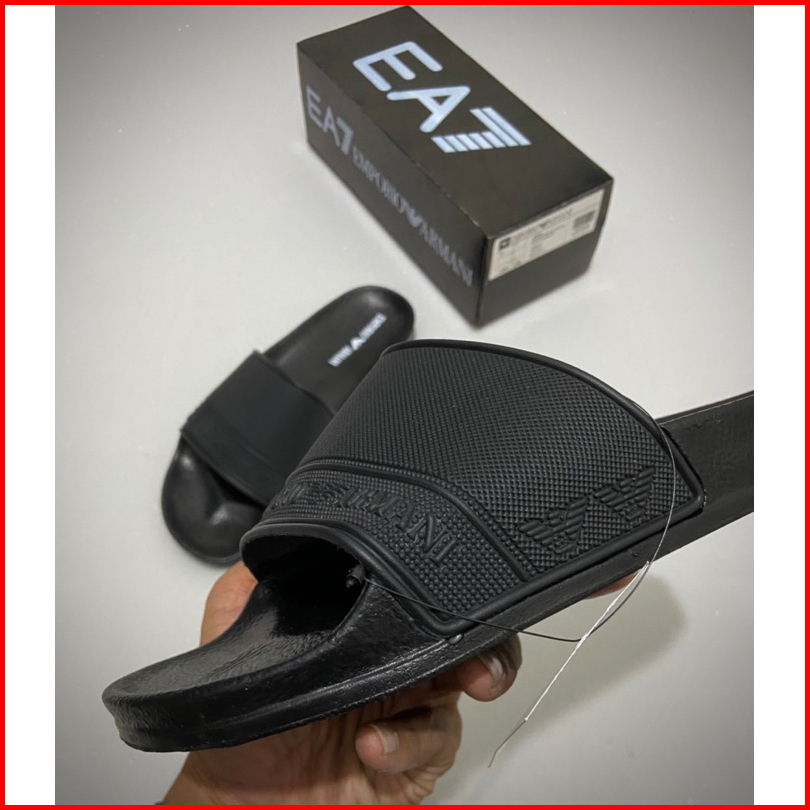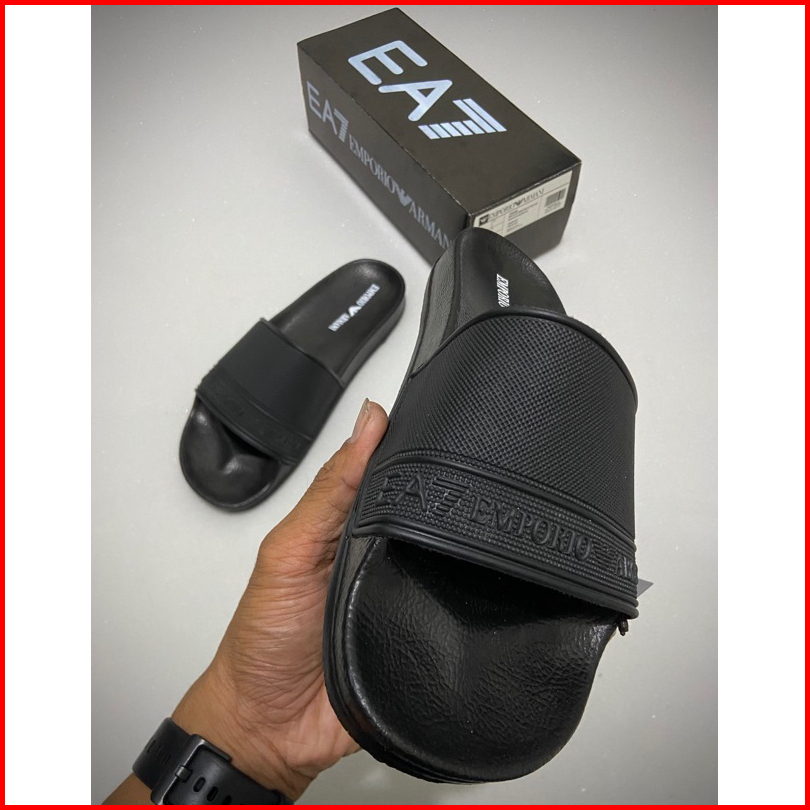 Sandal Slip-on Premium Full Black Bahan Embos Bintik Fre Boxs