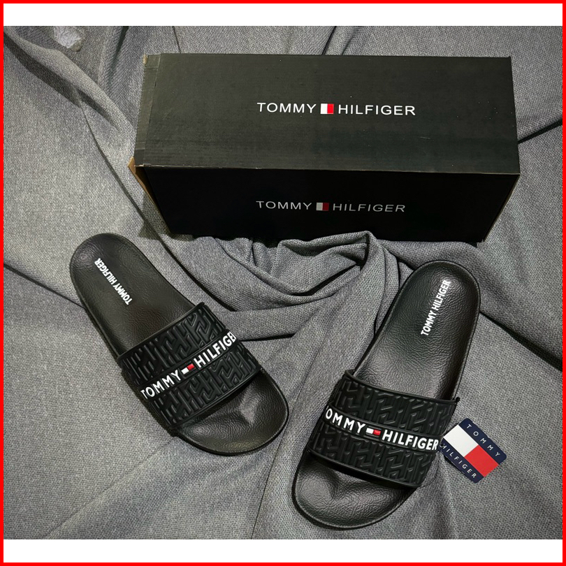 Sandal Slip-on Premium Tom Tom Motif Embos Timbul Hitam Putih Fre Boxs