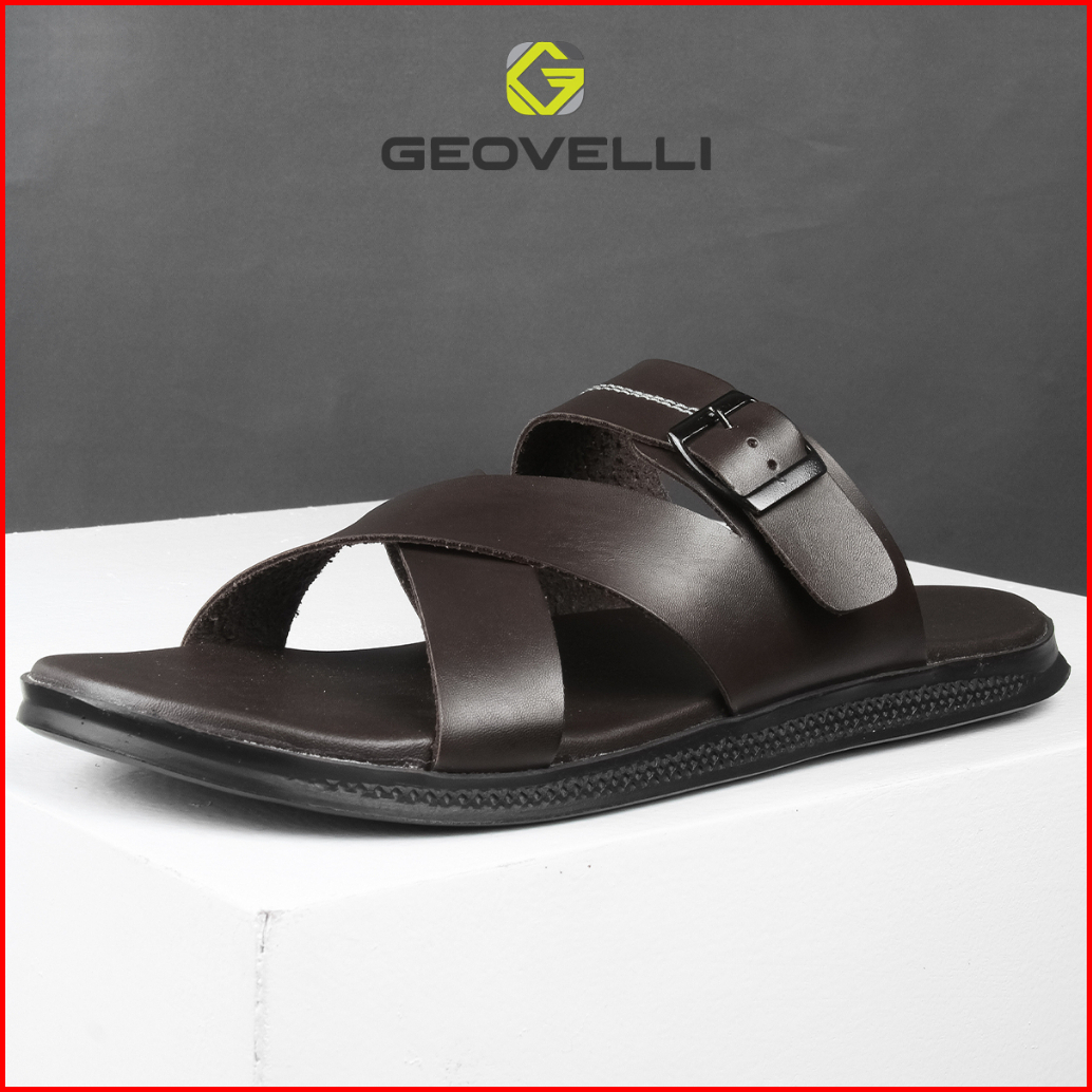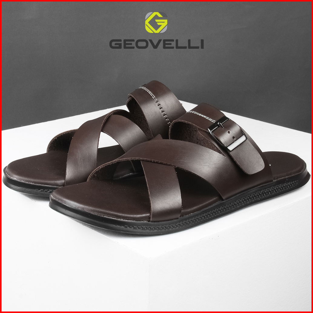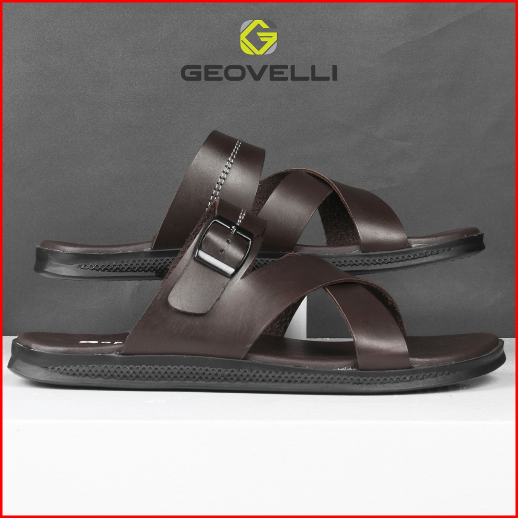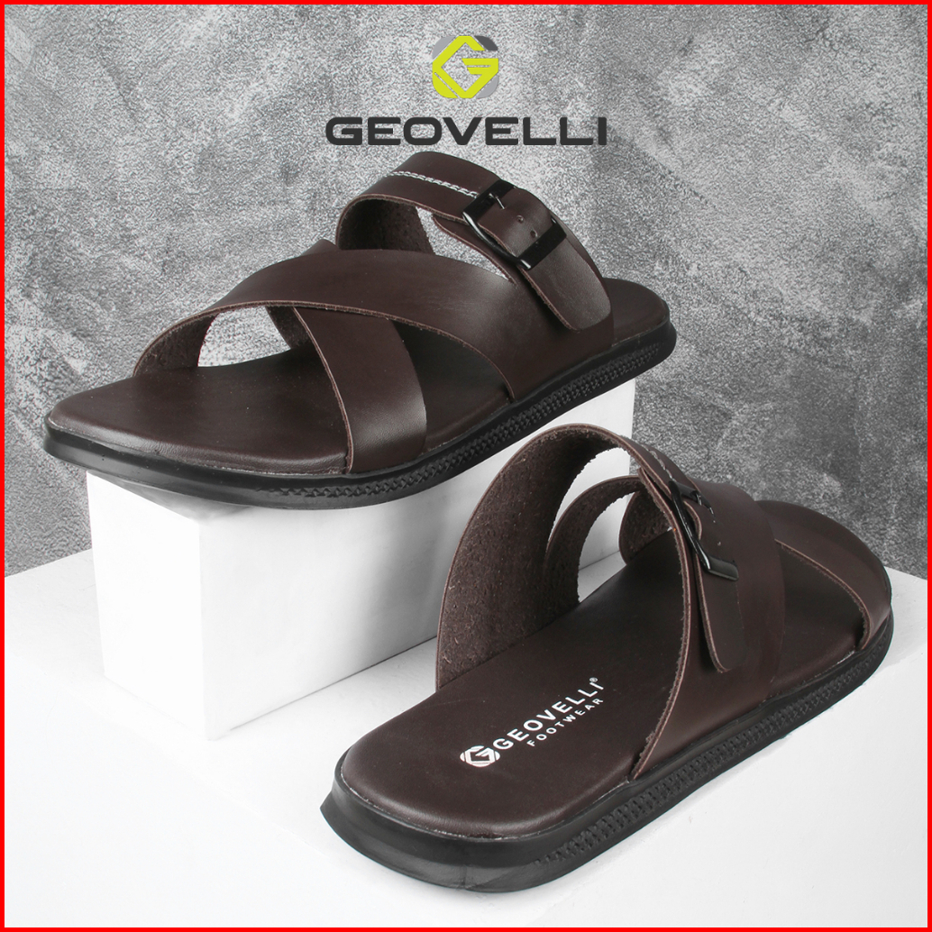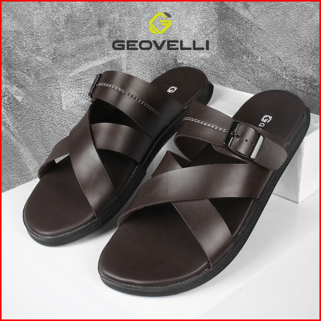 Sandal Pria Casual Geovelli Tipe Osaka Ori Sendal Pria Kulit Premium Kualitas Import G1984 Coklat