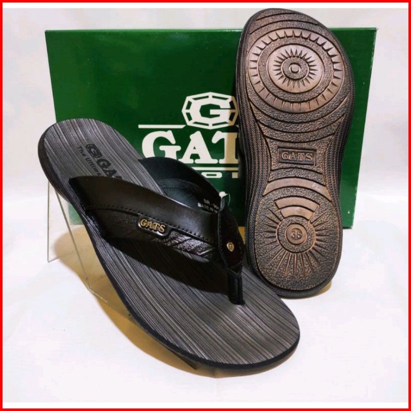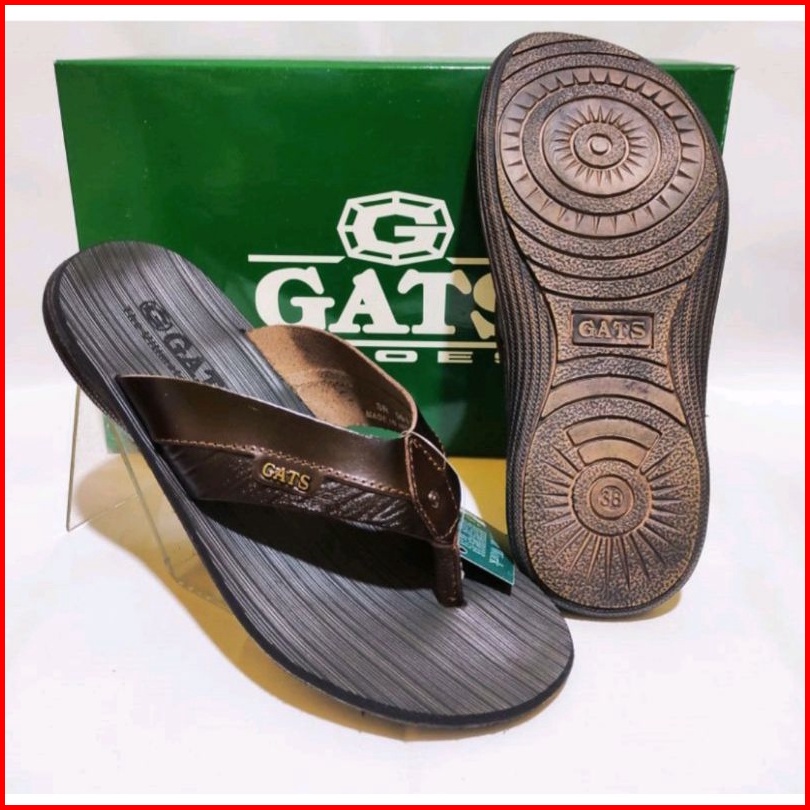 Sandal Pria Gats Sr-001 Kulit Asli Hitam Coklat Tua