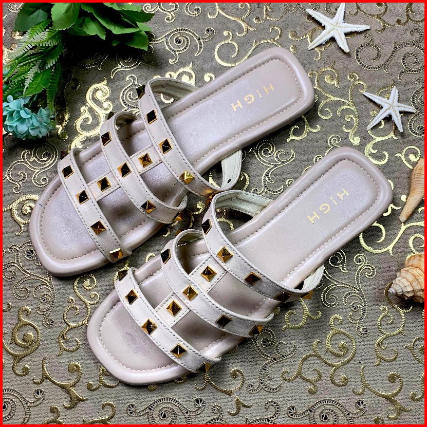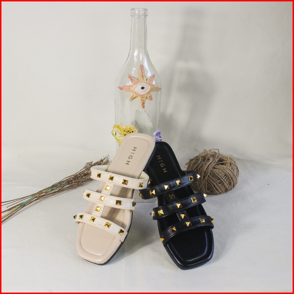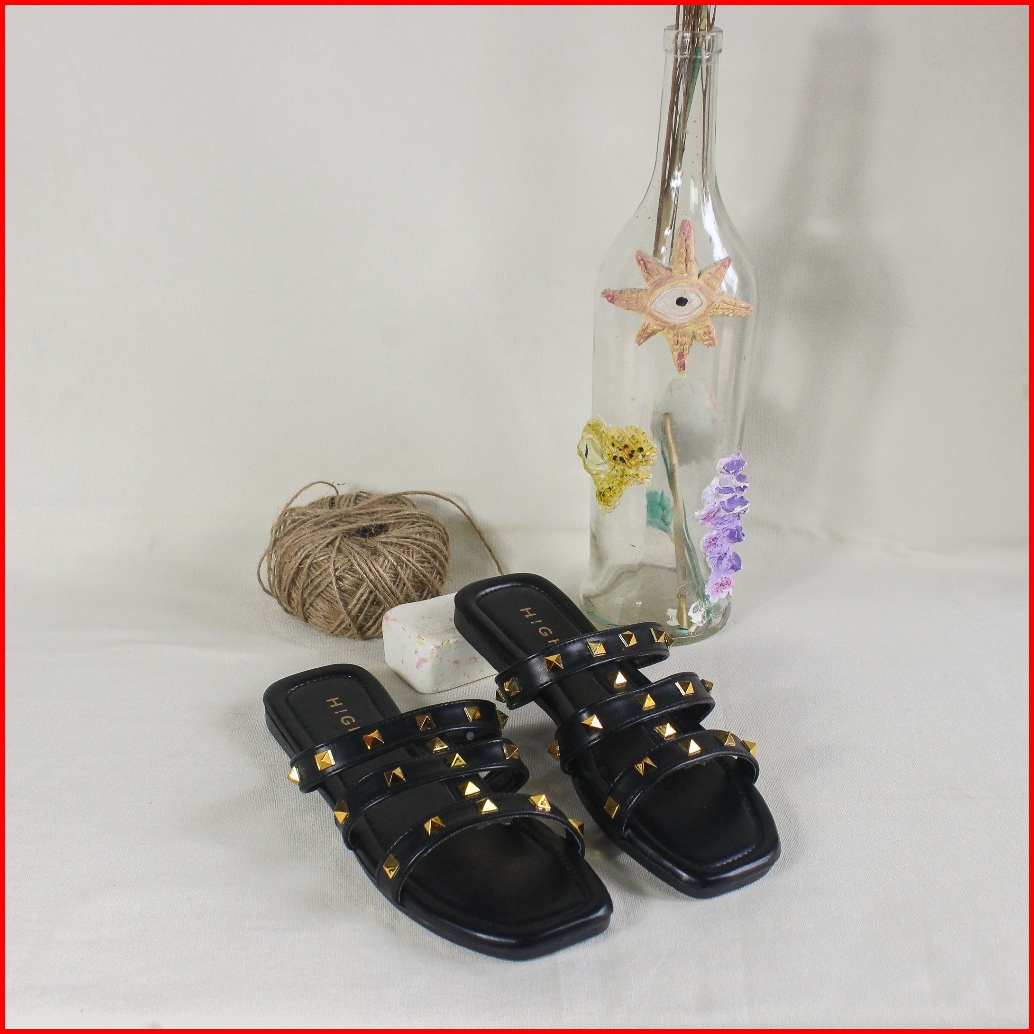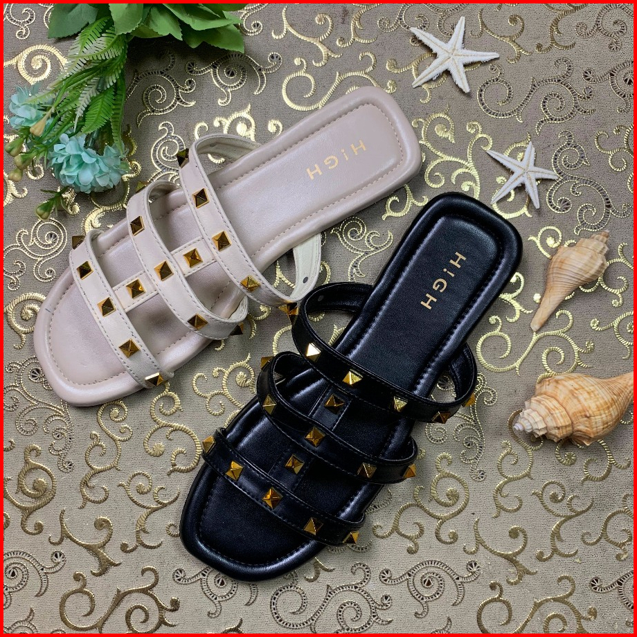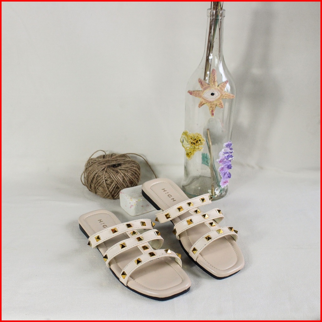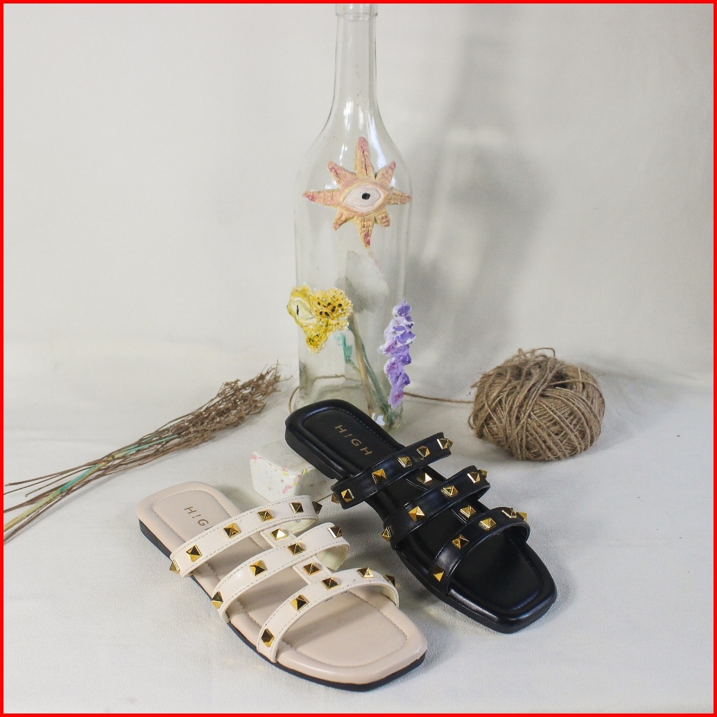 High - Valentina Sandal Wanita Flat Acc Pyramid Premium Daily Fashion