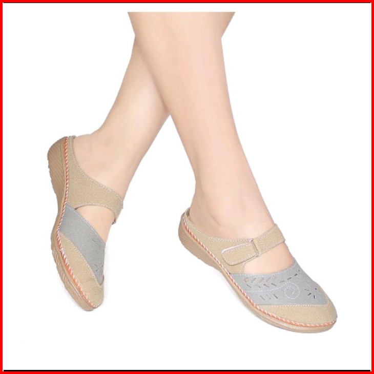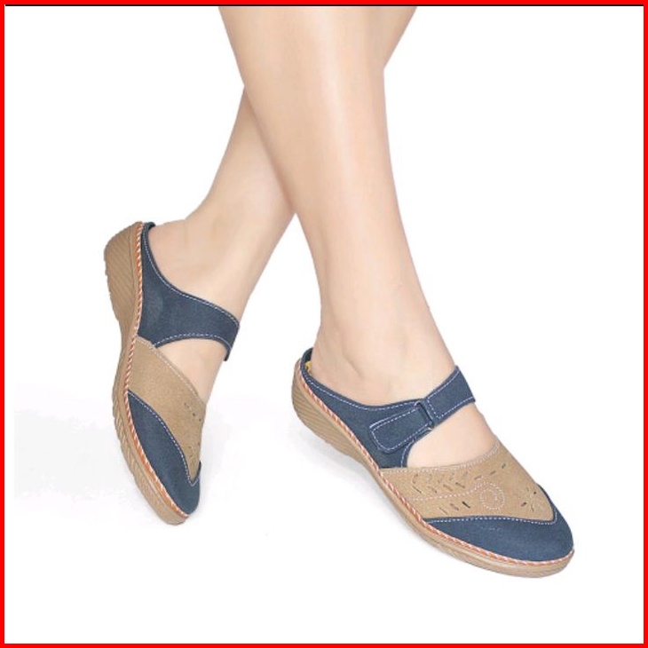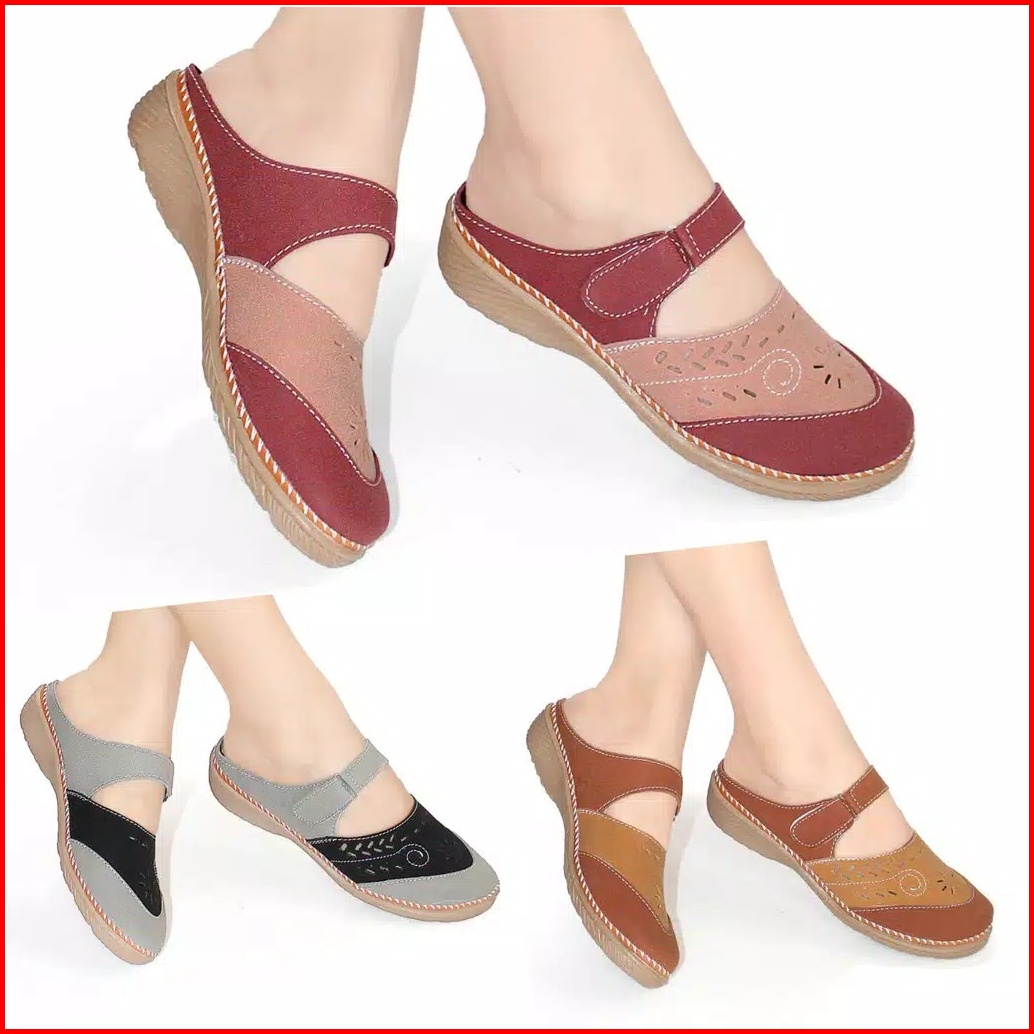Sandal Wanita Slop Kulit Sintetis Sol Karet