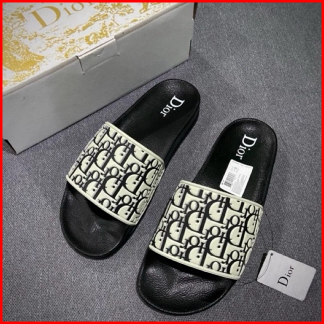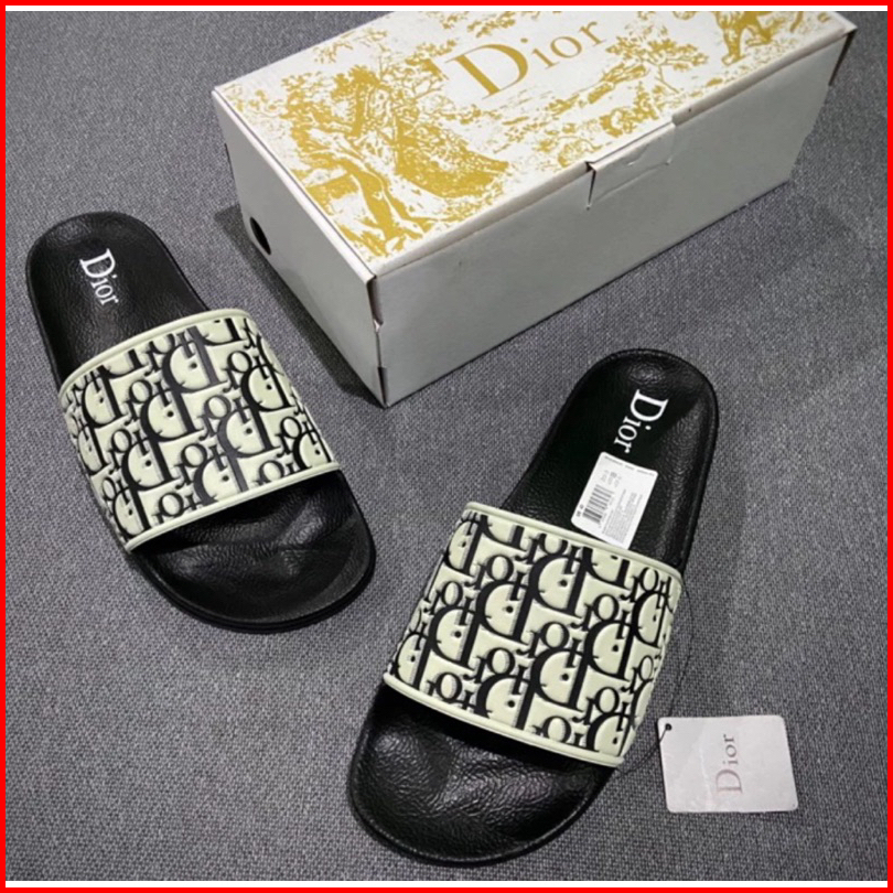 Sandal Slip-on Premium D Motif Embos Crem Silver Free Boxs
