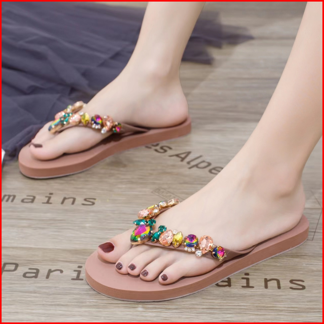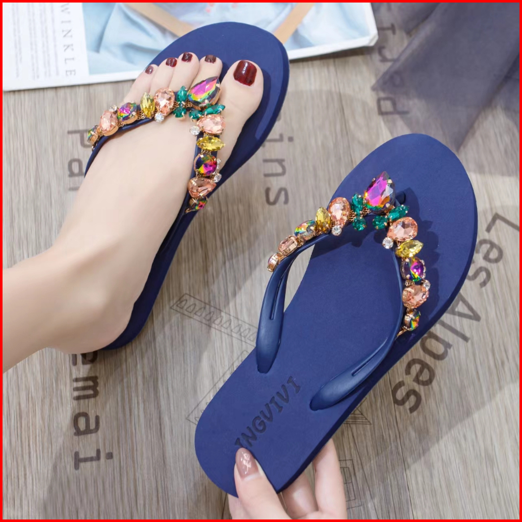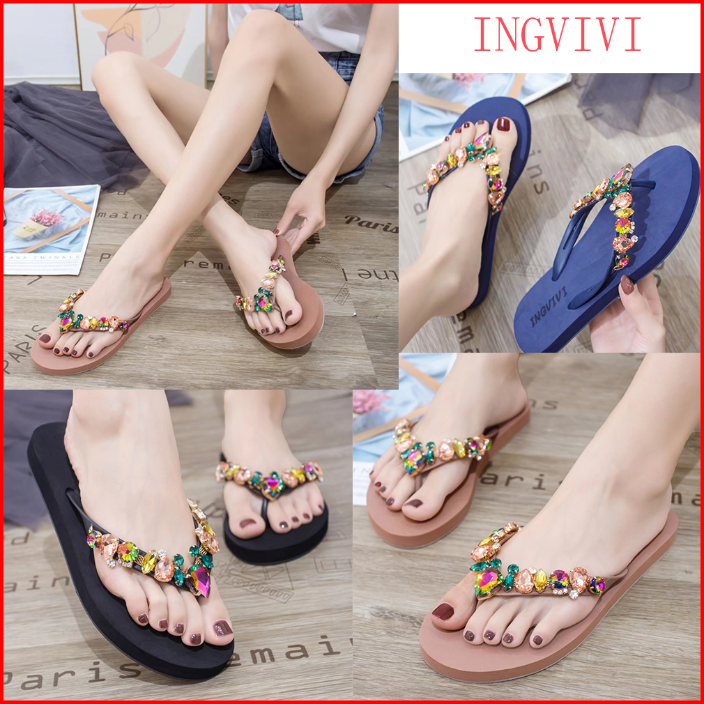 Termurah Sendal Ingvivi Wedges Jepit158-5 Sandal Ingvv Swarovsky Wedge Permata Spon Flip