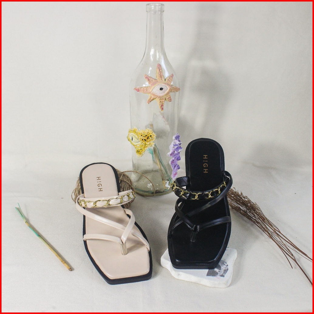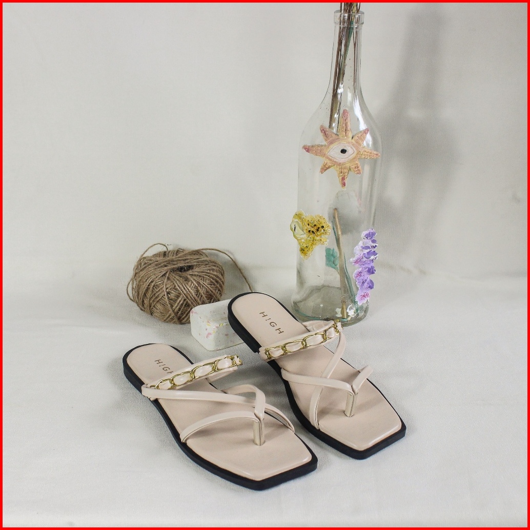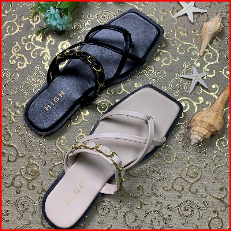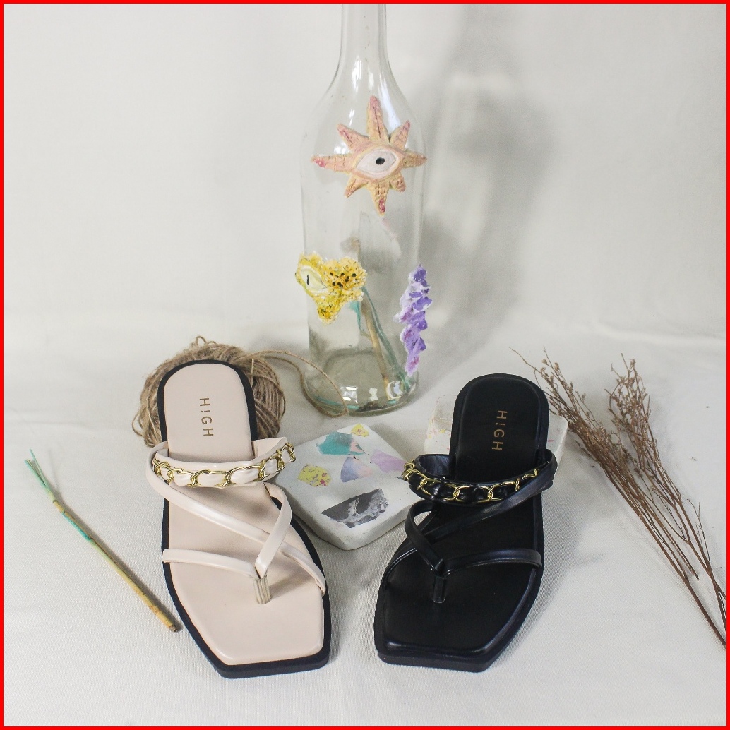 High - Caroline Sandal Wanita Flat Acc Goldchain Quality High Brand