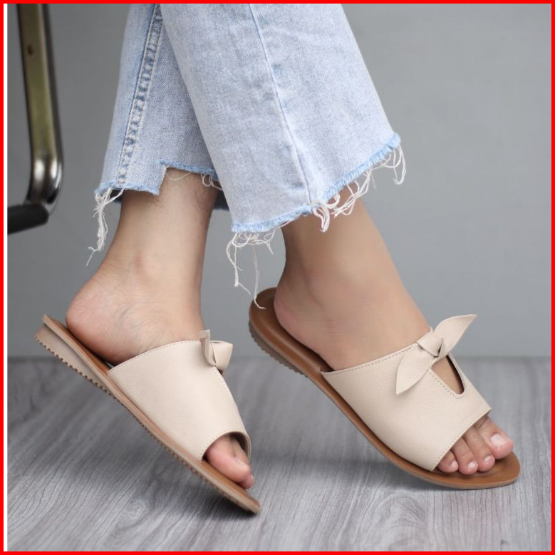 Sandal Sendal Flat Selop Slop Kulit Asli Garut Casual Perempuan Papirut Kepang Kasual Remaja Dewasa Wanita
