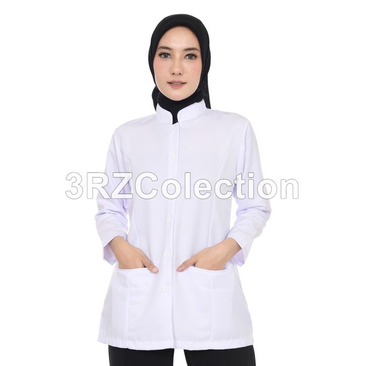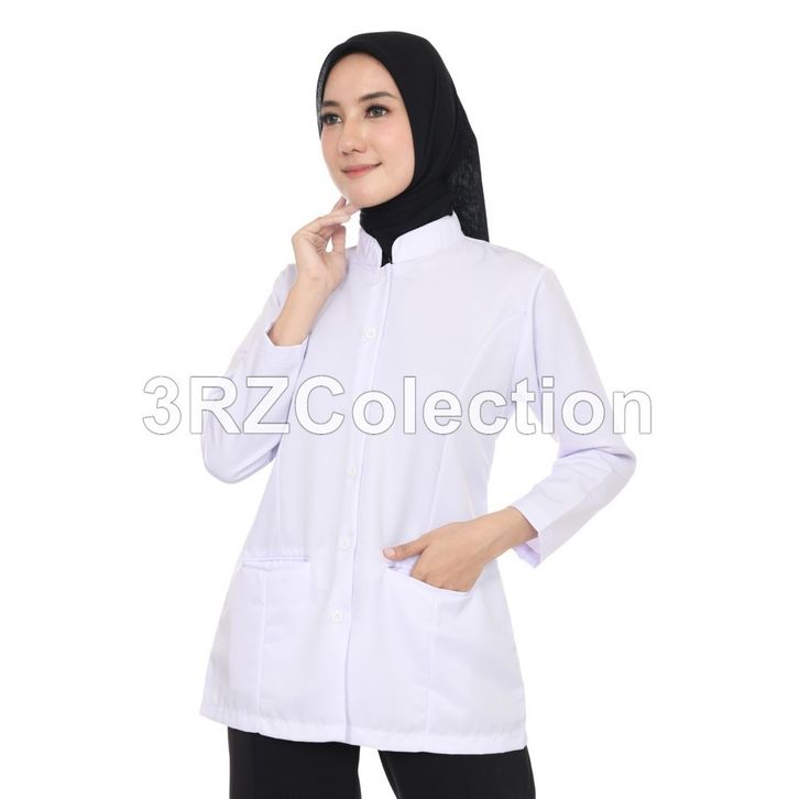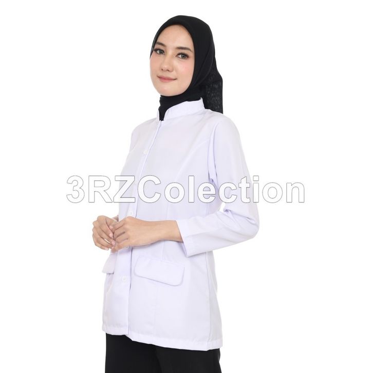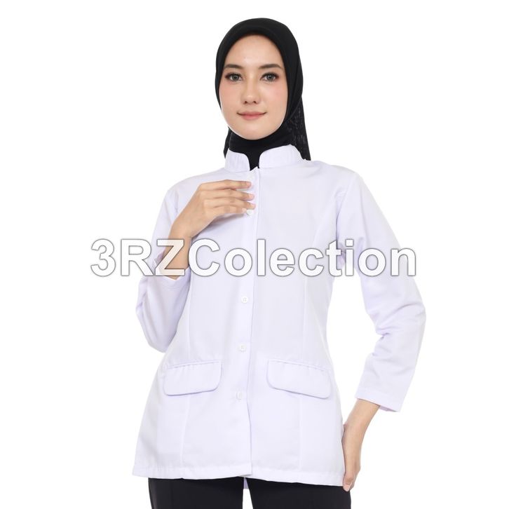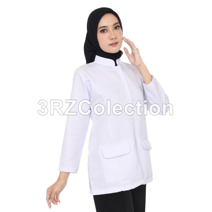Kemeja Kerja Putih Wanita PNS Kerah Sanghai Lembut - Atasan Dinas Seragam Terbaru Lengan Panjang & Pendek