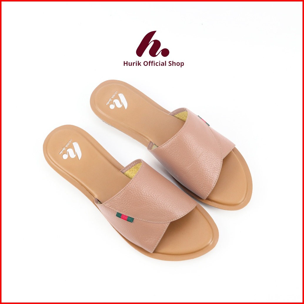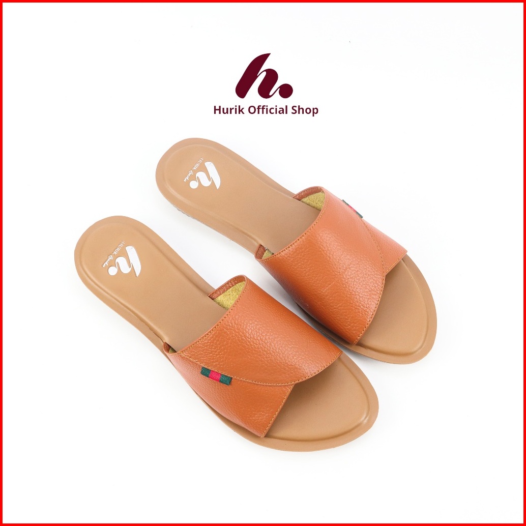Hurik Sandal Flat Teplek Wanita Kulit Sapi Asli Sandal Kulit Wanita Sandal Kulit Garut