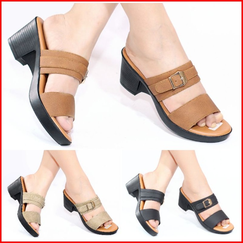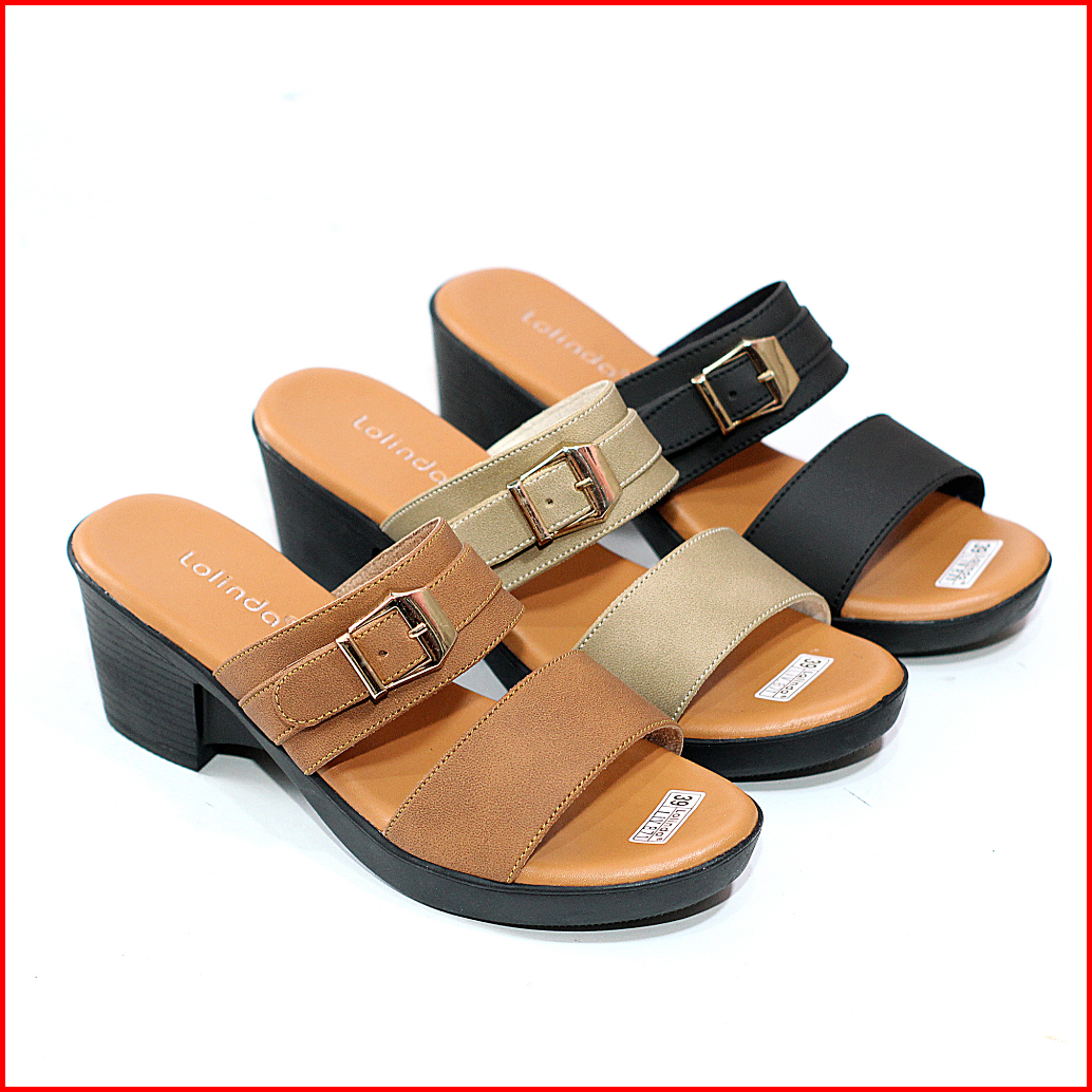 Wedges Wanita Casual Selop Terbaru Lolinda Sandal Wedges Wanita Slop Gesper Cantik Lolinda Liv 871