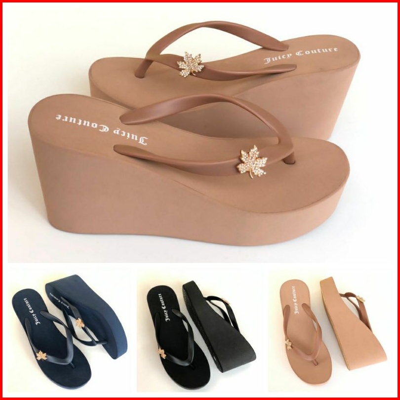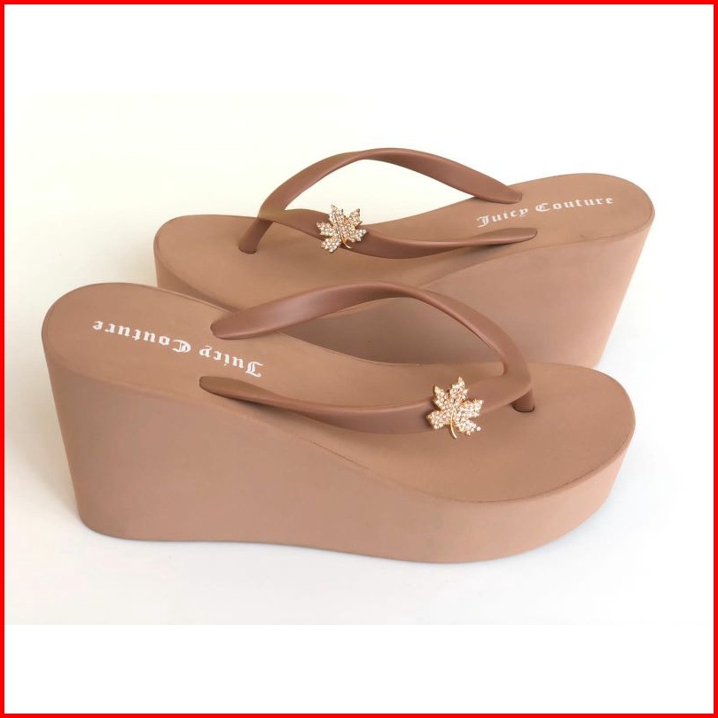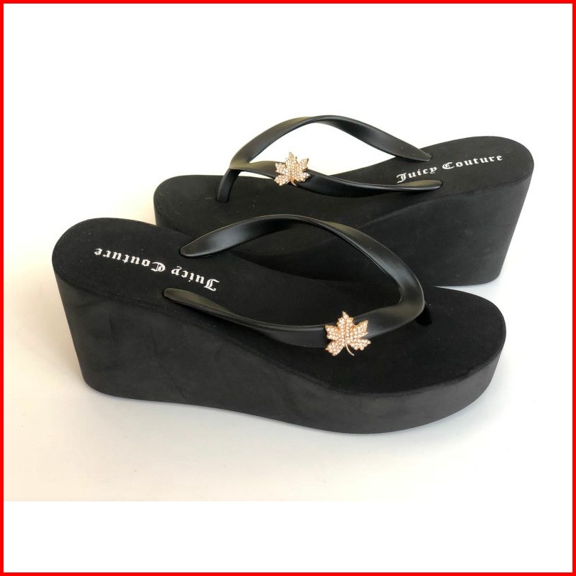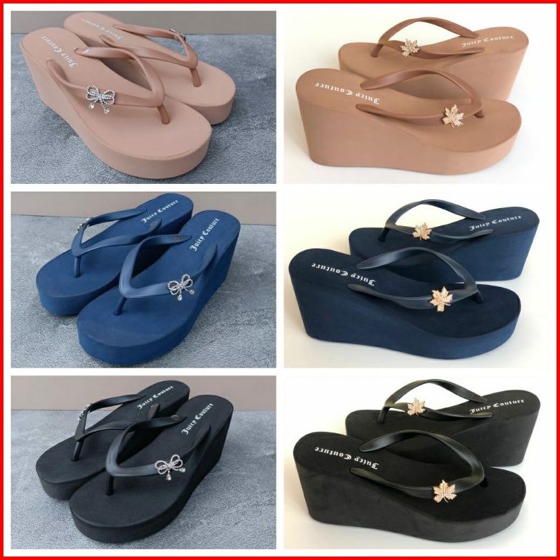Sandal Jepit Juicy Couture Wedges Pin Leaves Ribbon Butterfly