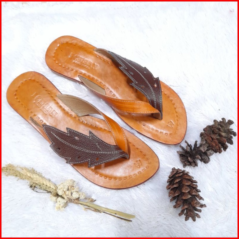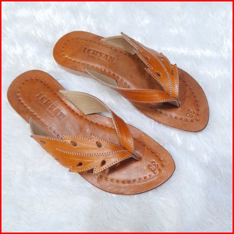 Sandal Wanita Japit Daun Sandal Kulit Nabati Sandal Kulit Asli