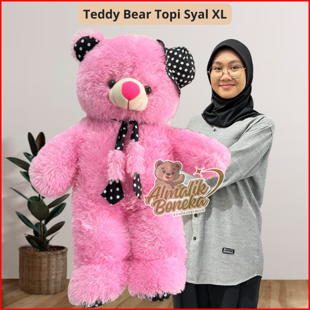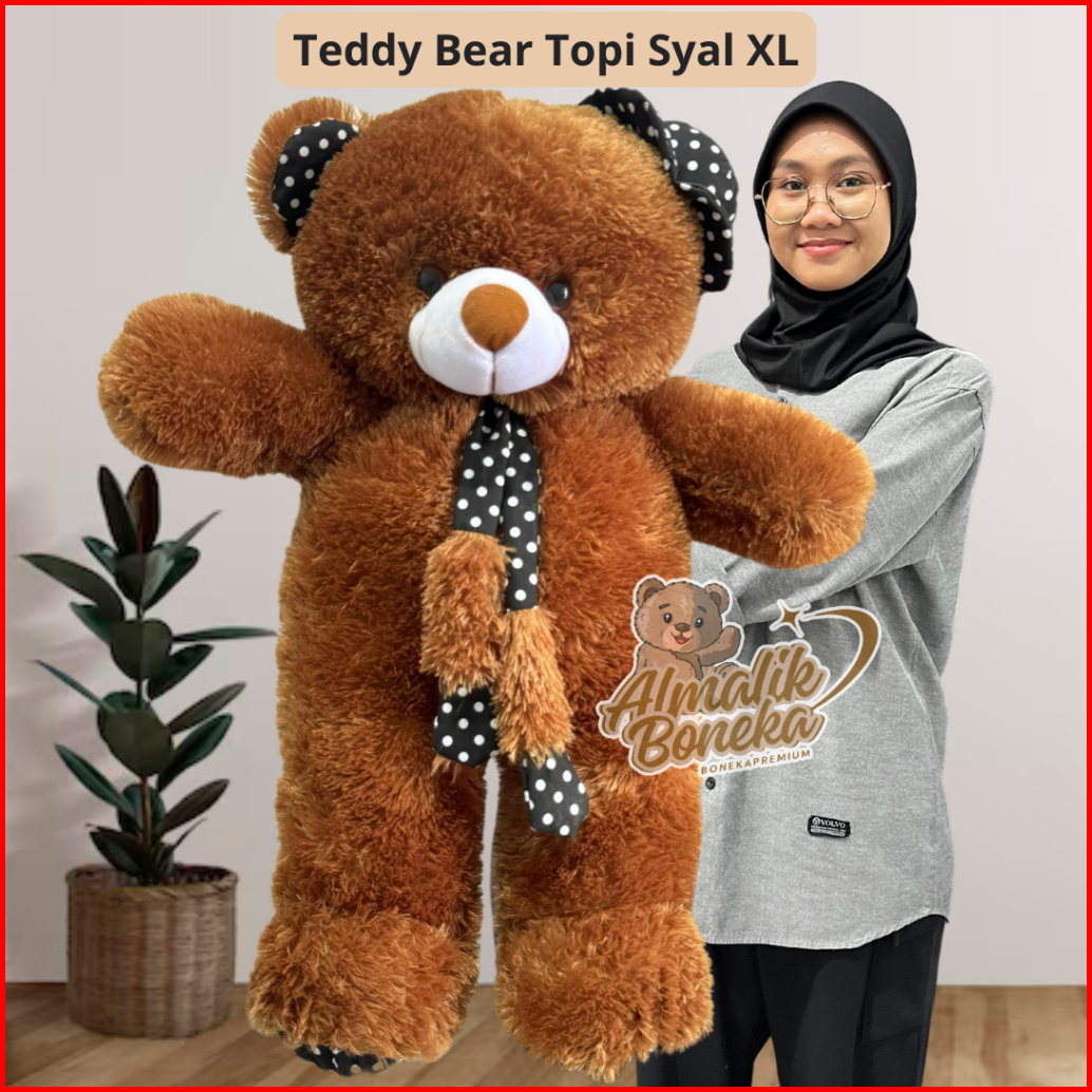 Boneka Teddy Bear Syal Topi Xxl 70 Cm Murah Bahan Rasfur Premium
