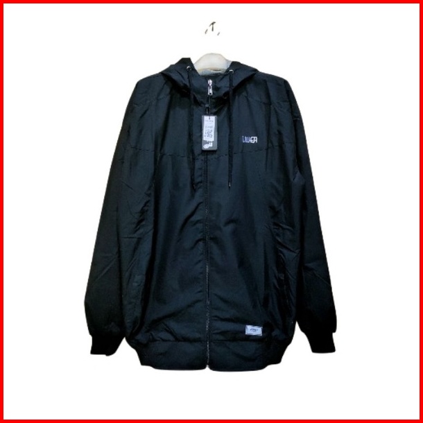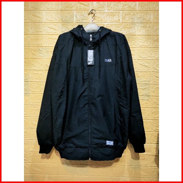 Jaket Parasut Anti Air Kasual Pria Ukuran Bigsize Jumbo Hitam