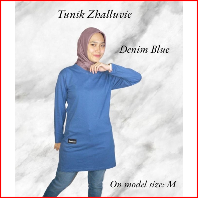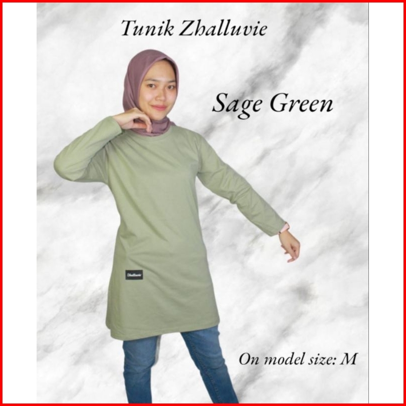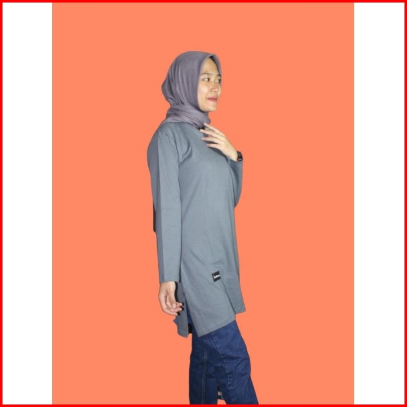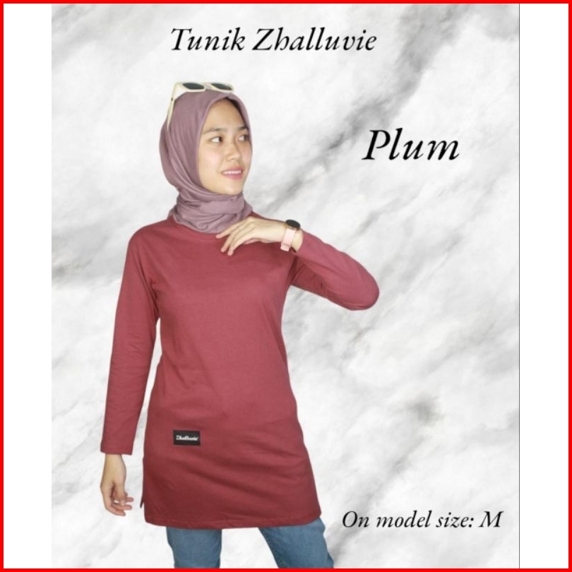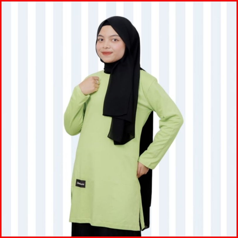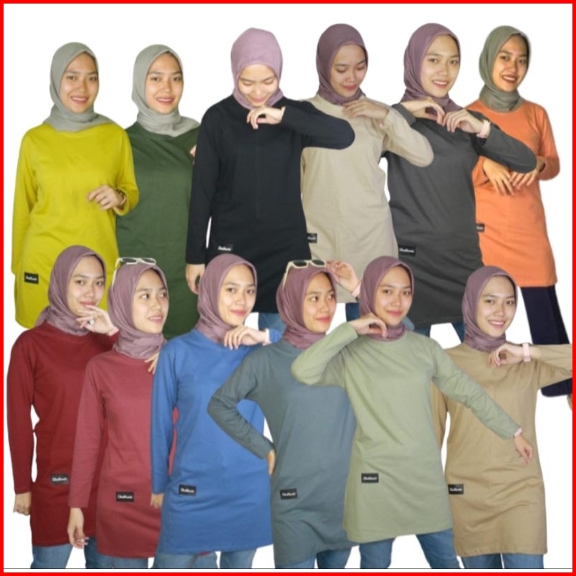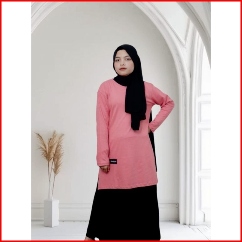 Zhalluvie-tunik Kaos Polos Muslim Lengan Panjang Cotton 24s