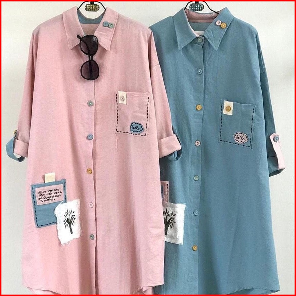Femes Haila Long Tunik Wanita Muslim Matt Cringkle Premium Atasan Kondangan Baju Hello Tunik Korean Style