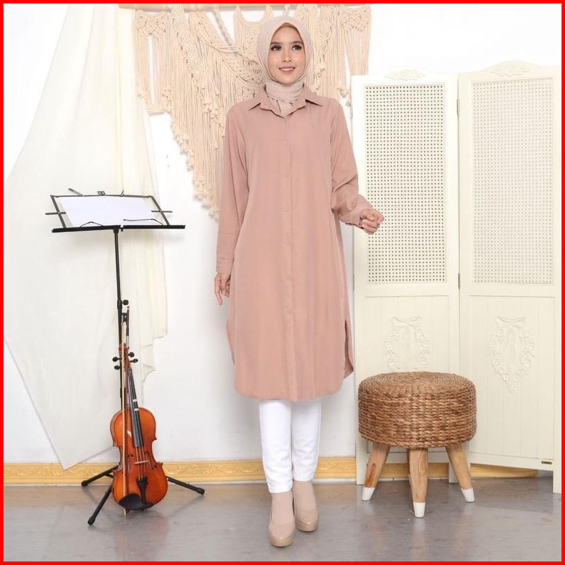 Kemeja Tunik Wanita Polos Bahan Shakila Twill Premium Long Tunik Wanita Muslim Tunik Panjang Basic Wanita Ld 120 Ukuran