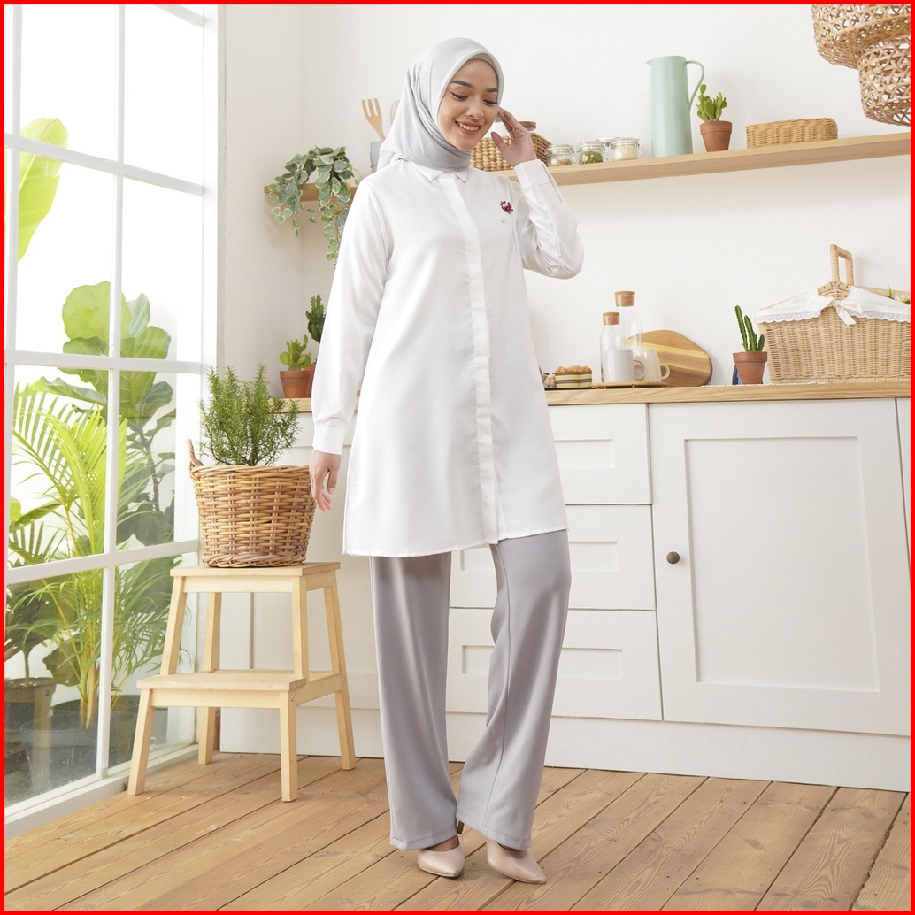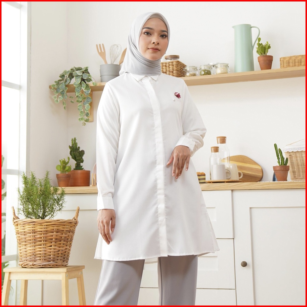 Wulfi Atasan Kemeja Putih Tunik Day To Day Katun Cotton Madinah White