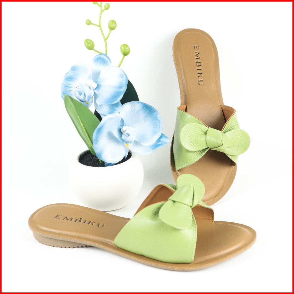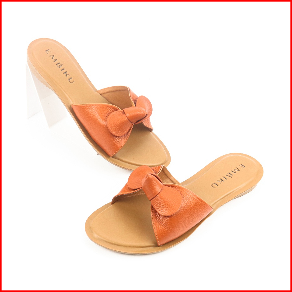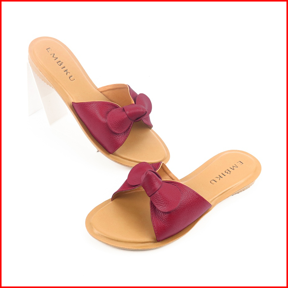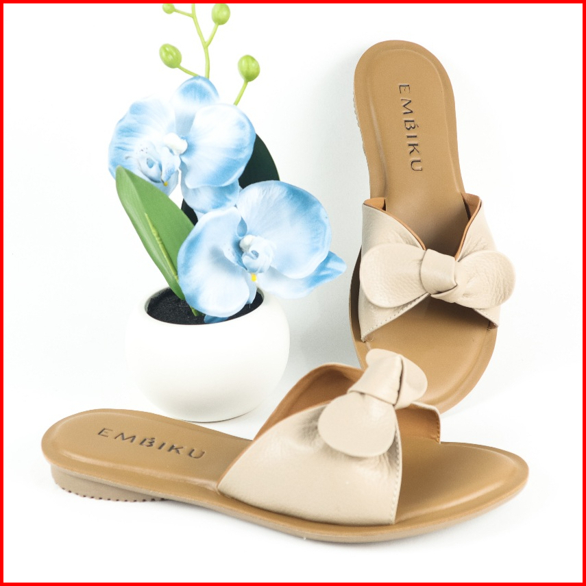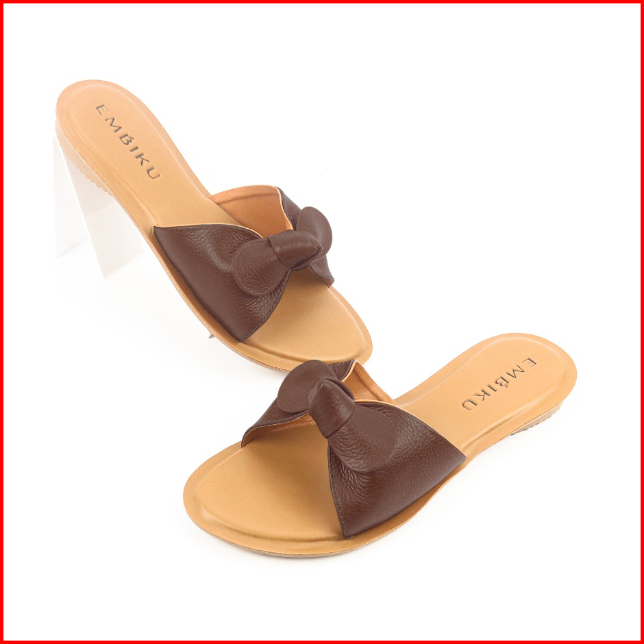 Embiku Pytagelung - Sandal Wanita Flat Teplek Kulit Asli Sendal Selop Pita Kulit Wanita Original Kulit Asli Sapi Garut