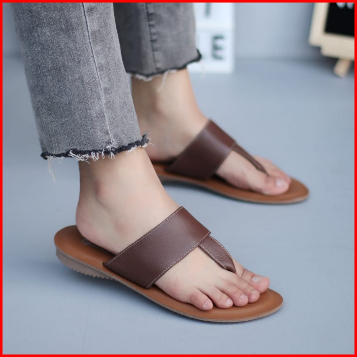 Sandal Sendal Jepit Kulit Wanita Sandal Flat Terbaru - Geovani Gesi