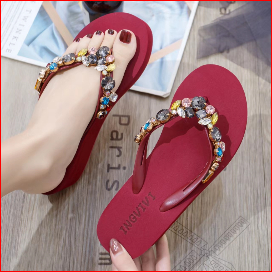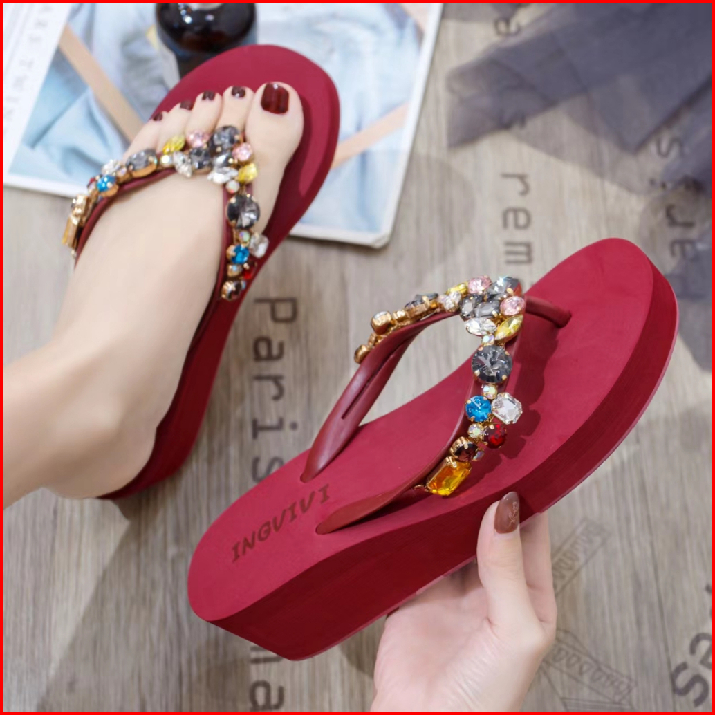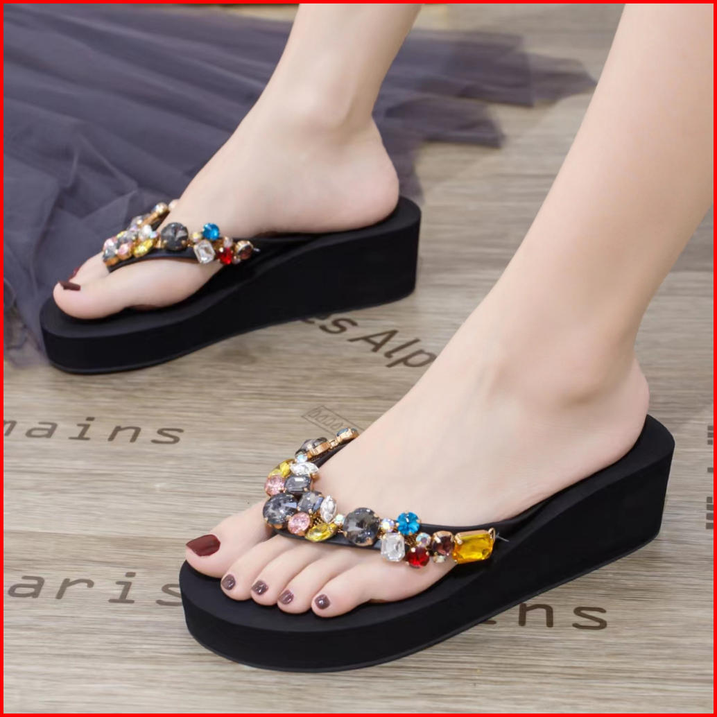 Sandal Jepit Ingvivi Wedges 799 719 Sandal Ingvv Swarovsky Wedge Permata Spons Spon Flip 5cm 7.5cm