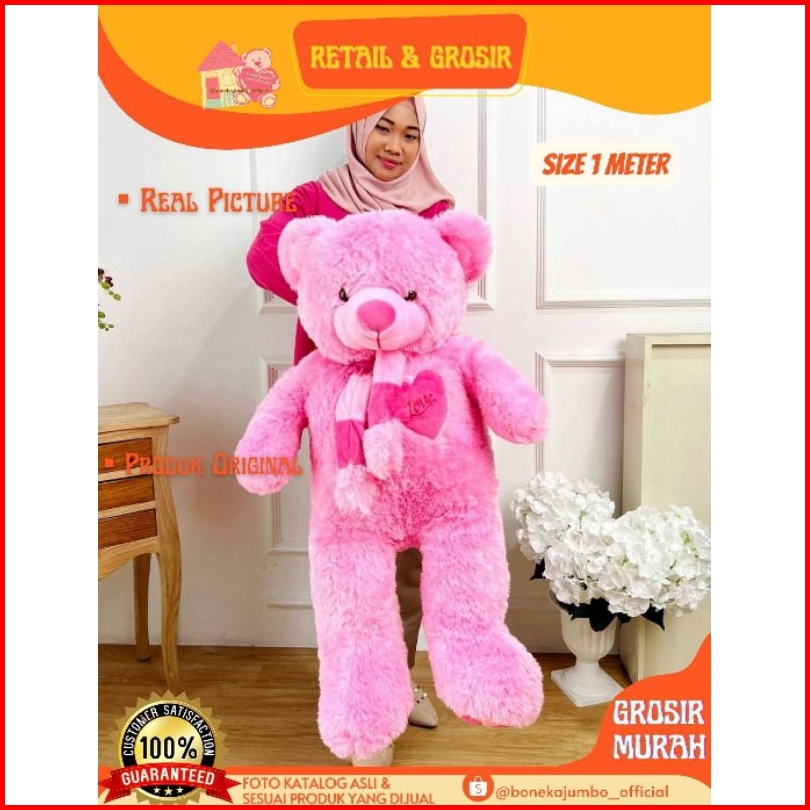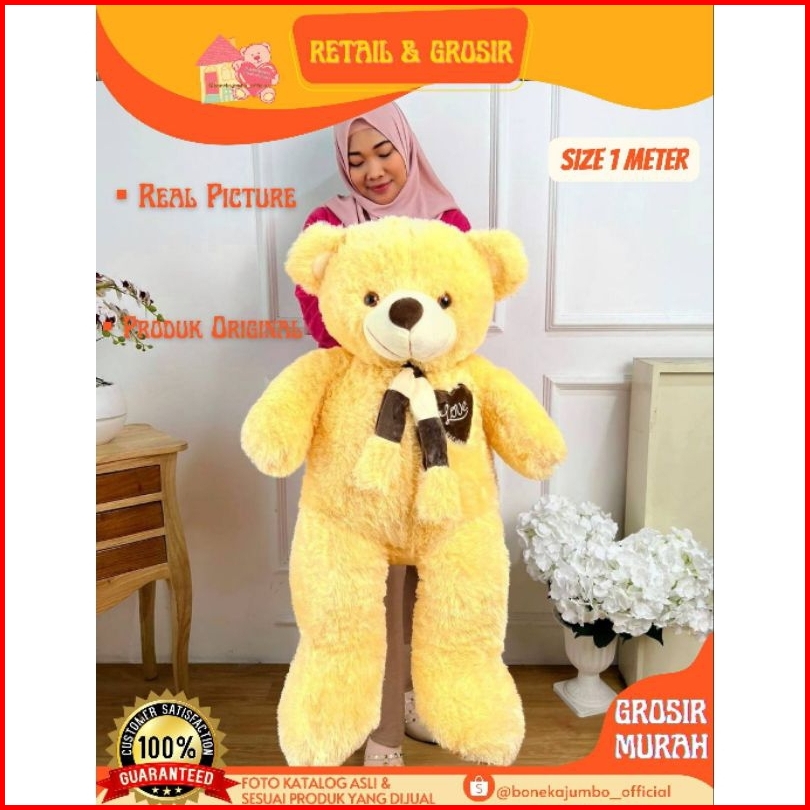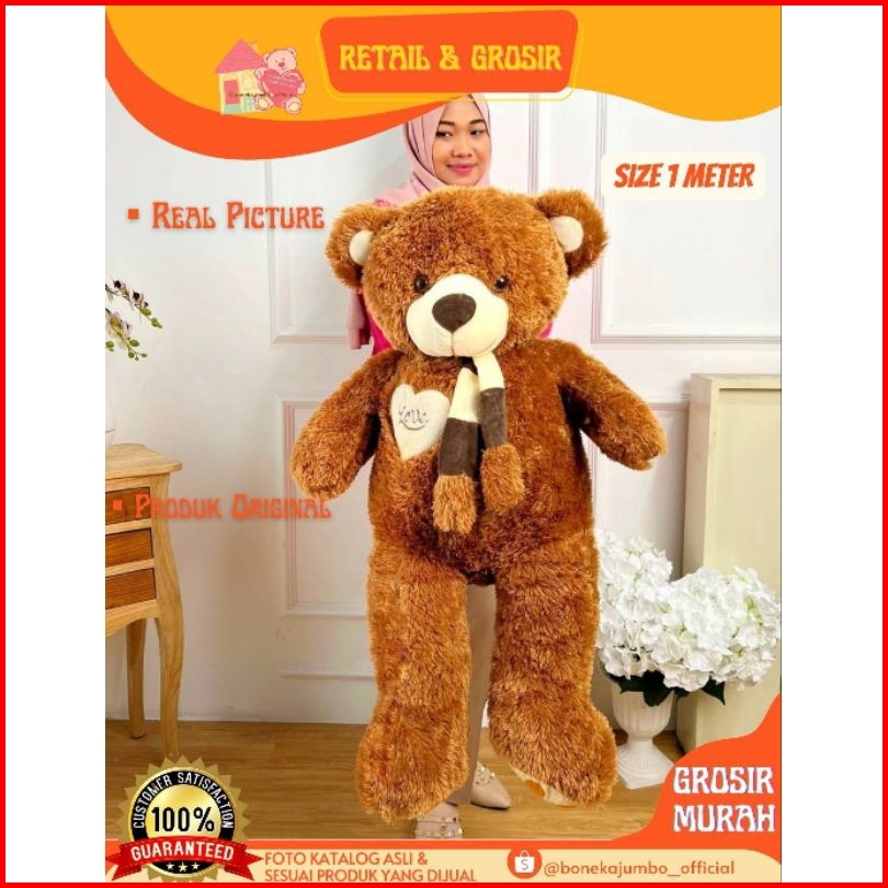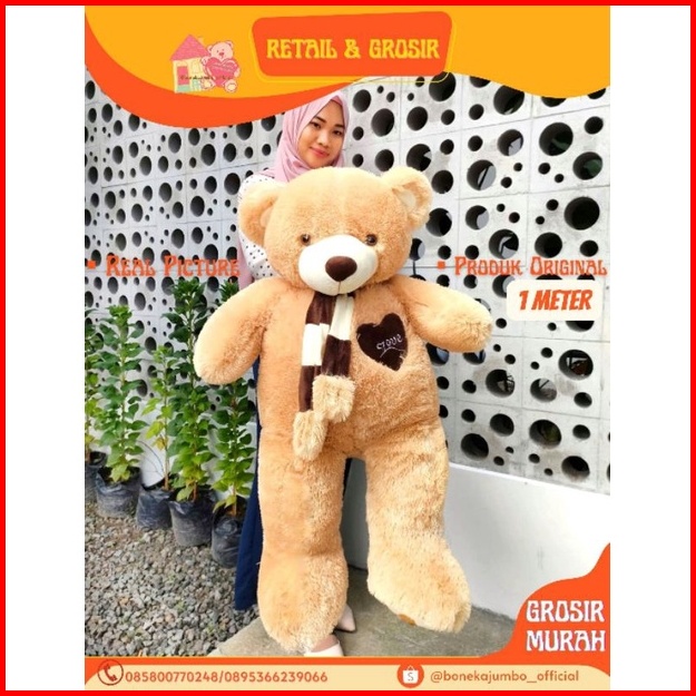Boneka Bear Beruang Jumbo Syal Telapak Love 1m Boneka Teddy Bear Syal Premium Best Seller