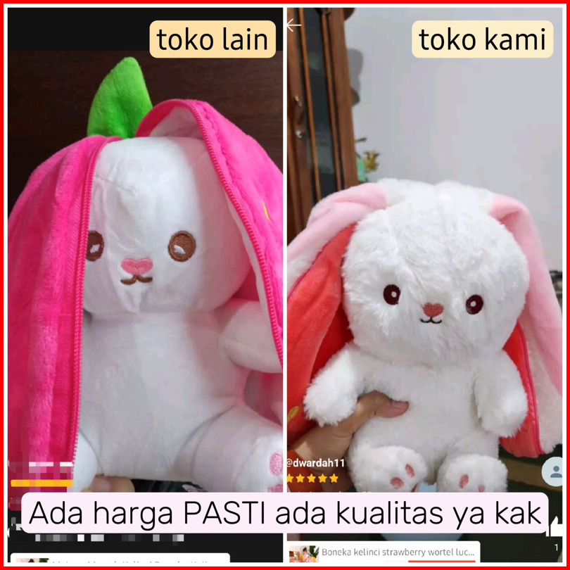 Boneka Kelinci Strawberry Wortel Lucu Jumbo Besar Lucu Stroberi Mainan Viral Flip Lucu Mewah Telinga Panjang Buah Bunny