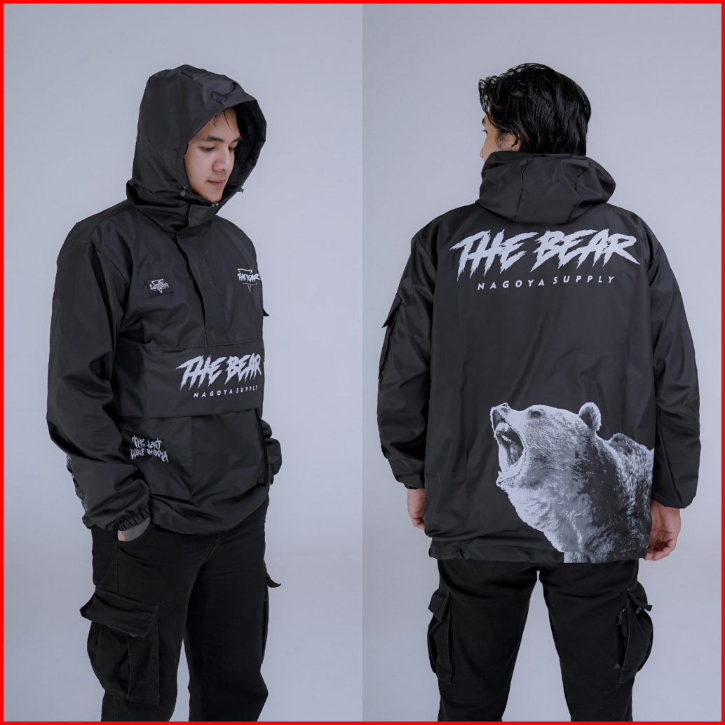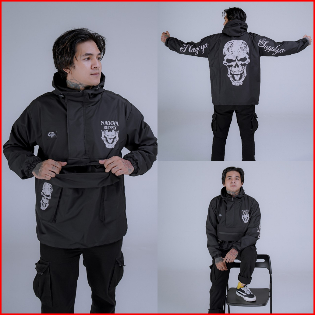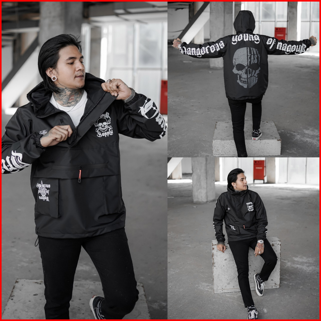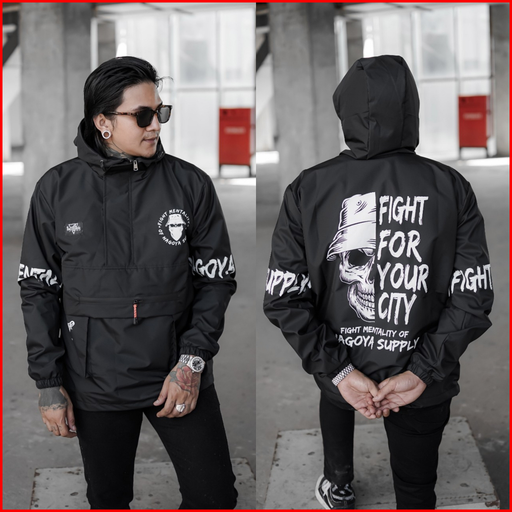 Jaket Pria Distro Parasut Waterproof Original Hitam Motif Anti Air Keren Jacket Cagoule Jaket Pria Wanita Terbaru
