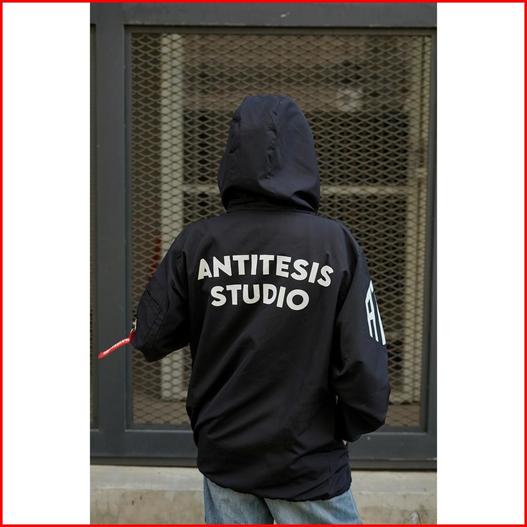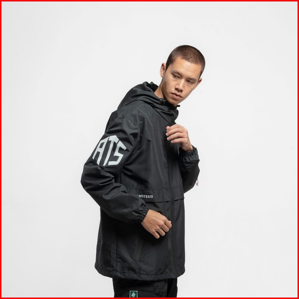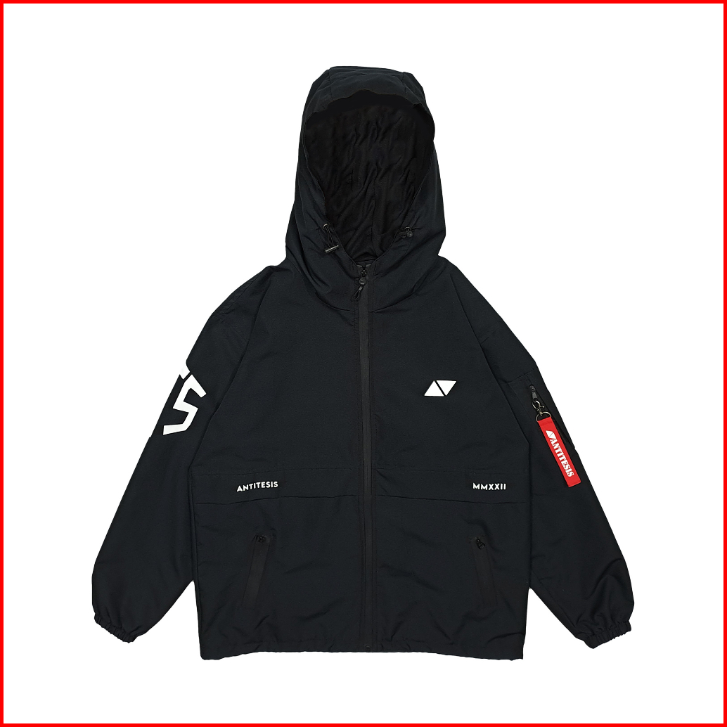 Helsinki.co Jaket Windbreaker Pria Wanita Matt Black Casual Water Repellent