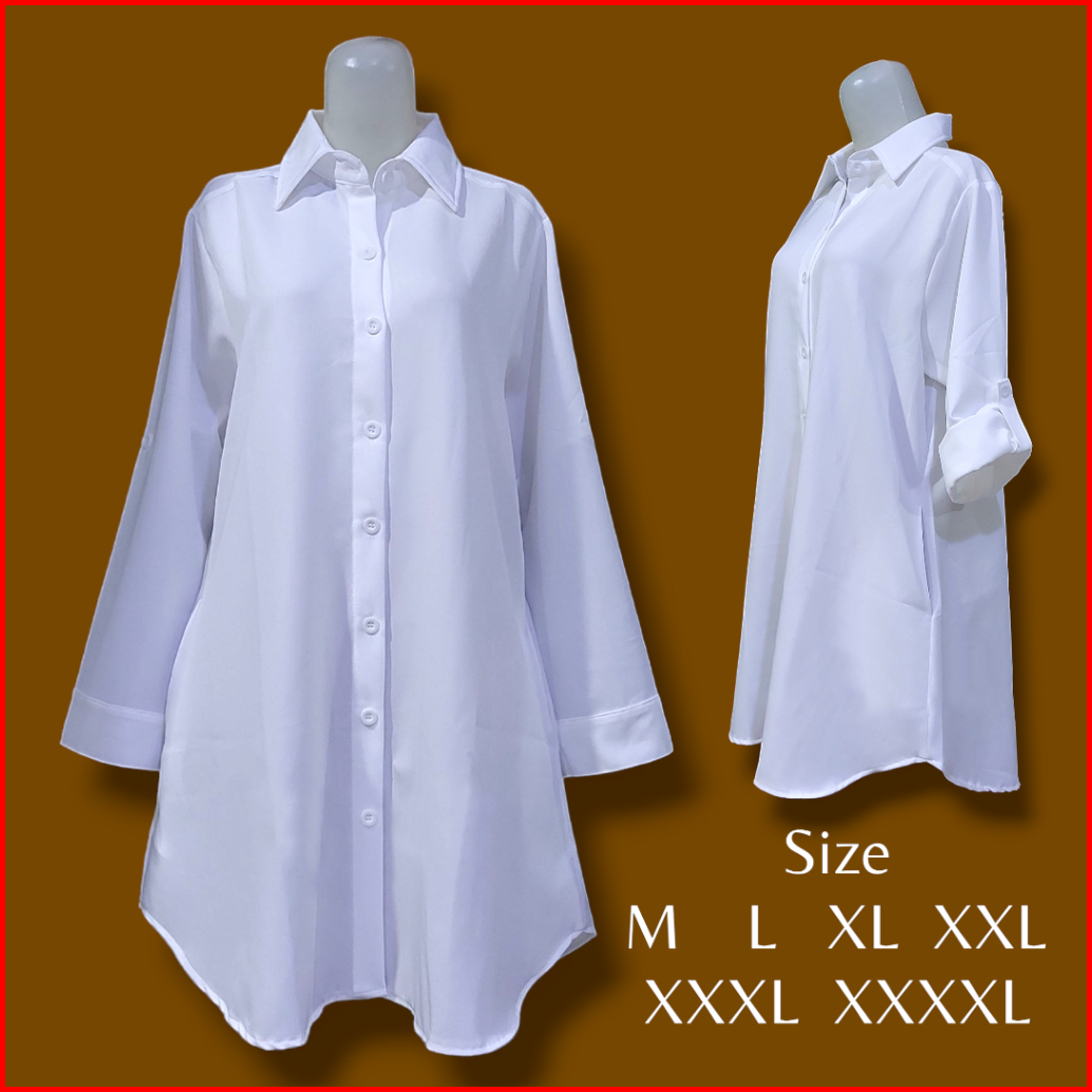 Nw Plus Baju Tunik Kemeja Putih Motif Polos Baju Atasan Wanita T1b8021