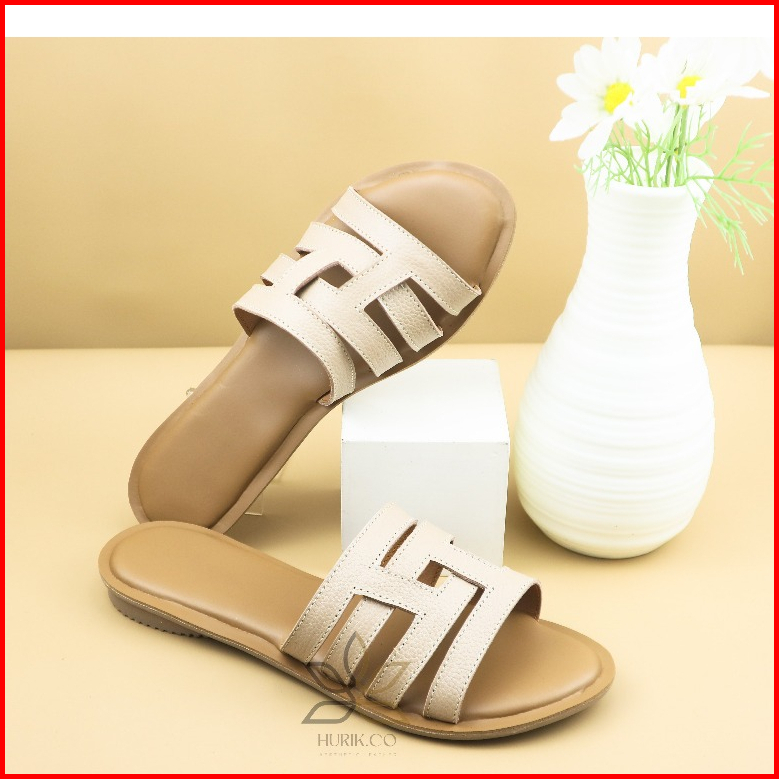 Hurik Sandal Flat Teplek Wanita Kulit Sapi Sandal Kulit Wanita