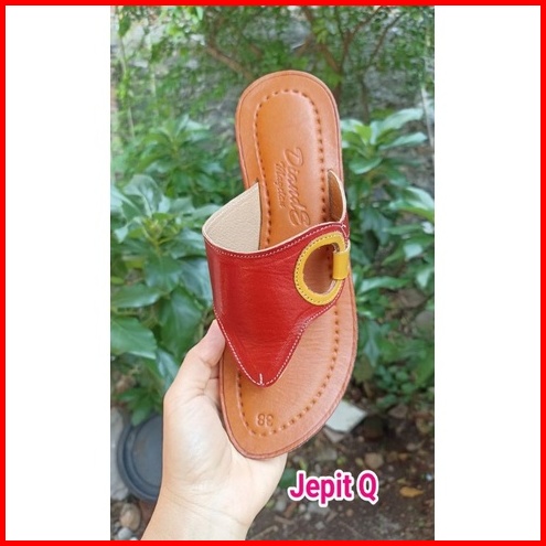 Raden Sandal Kulit Wanita Sandal Kulit Asli Magetan Sandal Kulit Model Jepit Q Dn27-kr Dn30 Tan