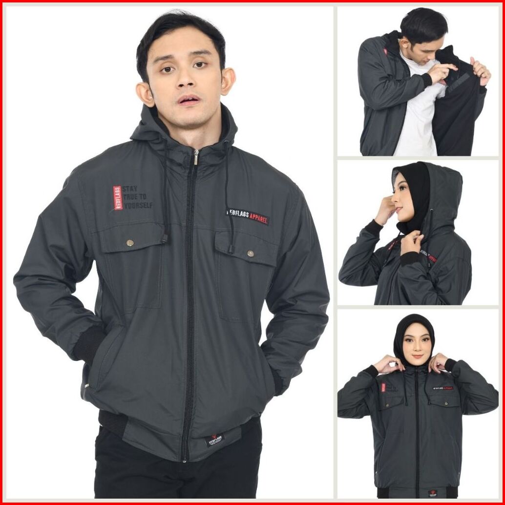 Jaket Parasit Pria Distro Waterproof Outerwear Bolak Balik Outdoor Anti Air Original