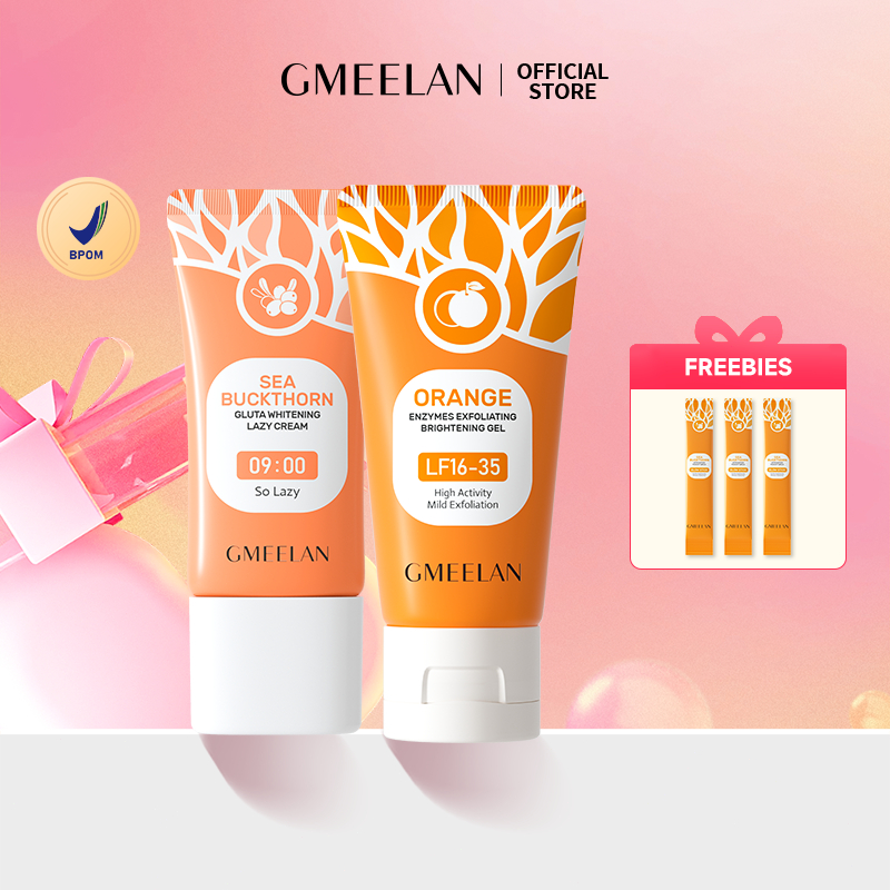 GMEELAN ORANGE EXFOLIATING GEL PEELING FACE EKSFOLIASI WAJAH + GLUTA WHITENING LAZY CREAM DAY CREAM PEMUTIH WAJAH SKINCARE KIT