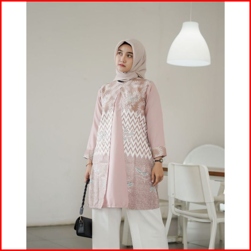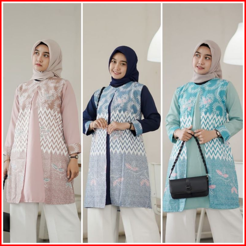 Tunik Ameena - Batik Wanita Kerja Baju Tunik Batik Modern.