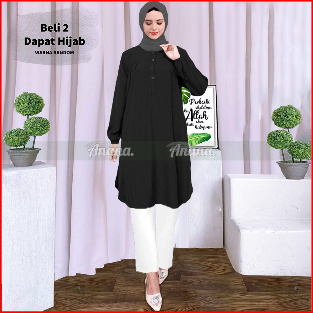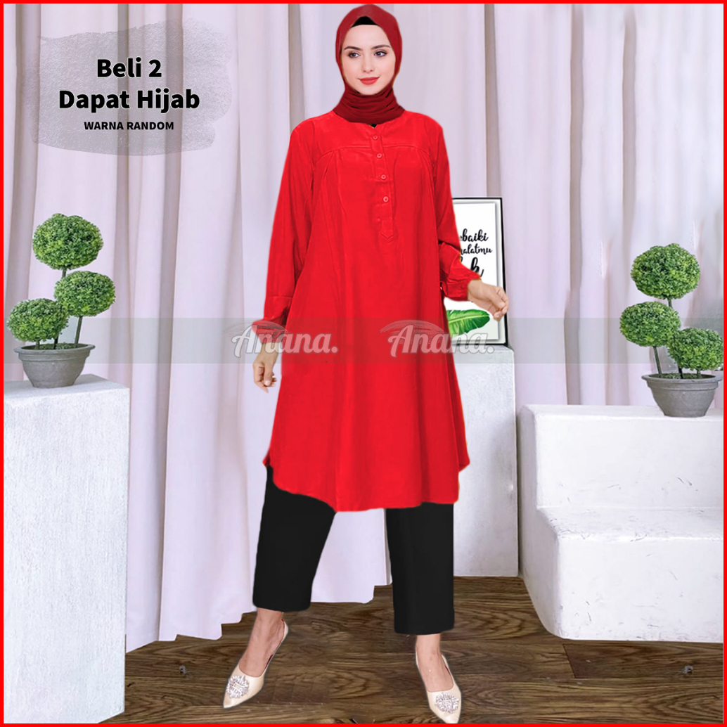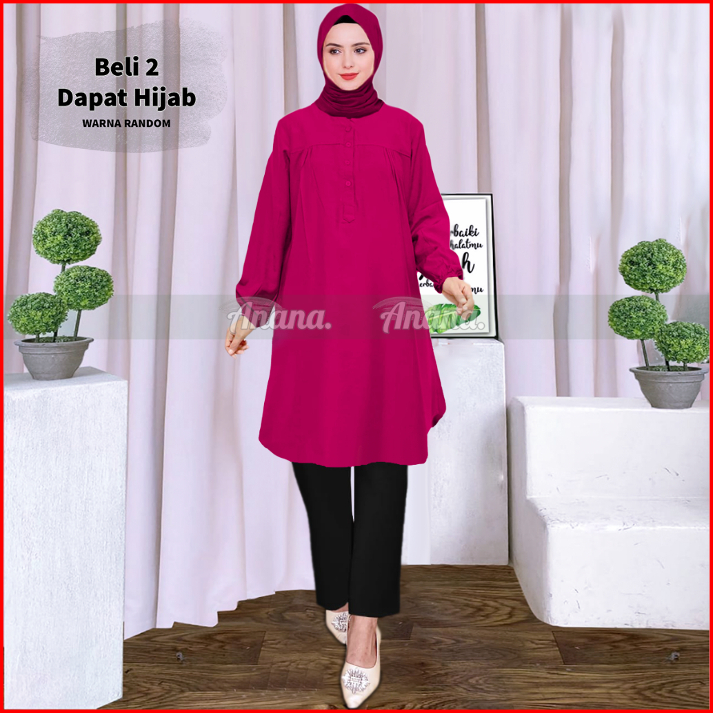 Baju Tunik Jumbo Size Untuk Wanita Model Lengan Panjang Polos