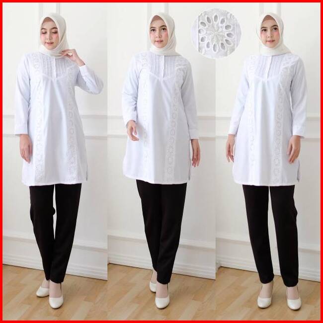 Tunik Matahari Atasan Tunik Putih Toyobo Millenial Xxxl