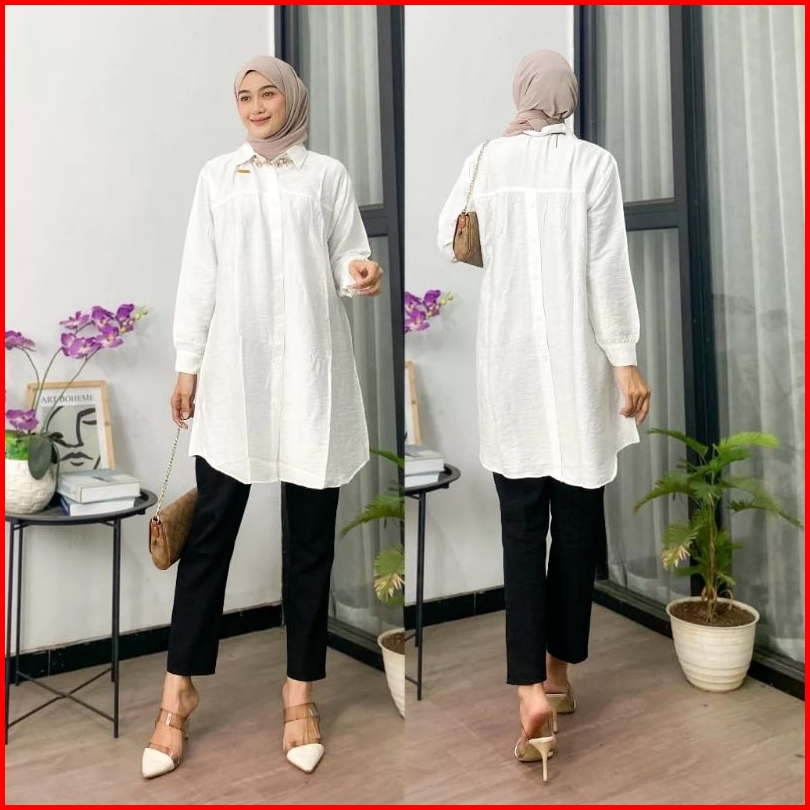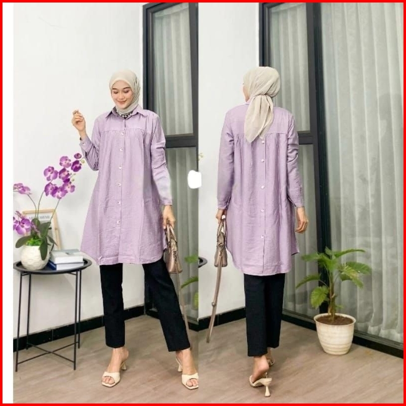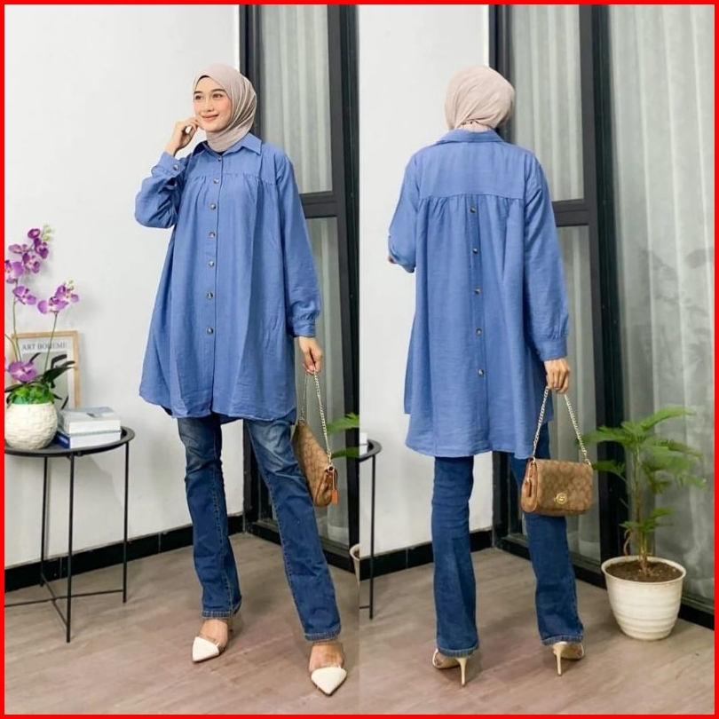 Zeva Tunik Polo Linen - Atasan Wanita Tunik Polo Linen Variasi Kancing Belakang