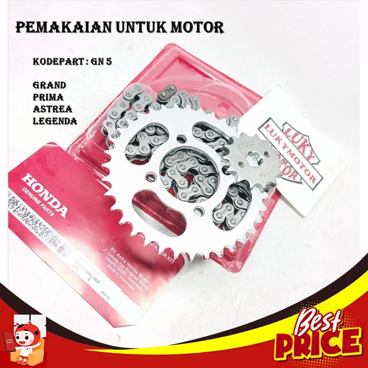 GEAR SET ASTREA GRAND, PRIMA,ASTREA GRAND,LEGENDA ( ISI PAKET GEAR DEPAN - GEAR BEALAKANG - RANTAI ) KODE GN5