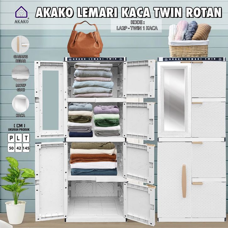 TERMURAH LEMARI PAKAIAN PLASTIK 4 SUSUN AKAKO LA2 + KACA TWIN ROTAN A2P 3 PINTU JUMBO BERKUALITAS 2024 PROMO TANPA DP