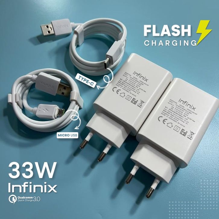 CHARGER INFINIX FAST CHARGING 33W ORIGINAL 100% MICRO USB & TYPE C / CHARGER INFINIX 33W ORI CASAN INFINIX 33W FA