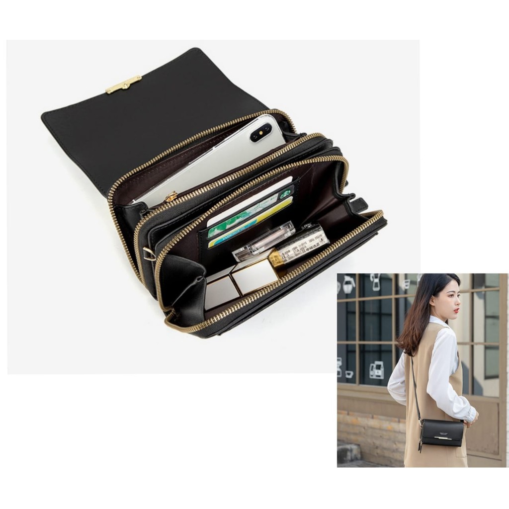 DOMPET SELEMPANG HP WANITA BATAM MURAH PESTA KULIT HITAM MANTLE WA226B5 REMAJA KEKINIAN KOREA
